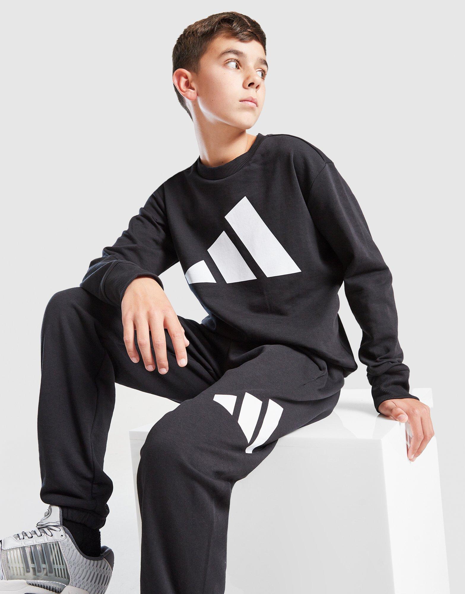 Rep adidas in big style. This juniors' Badge of Sport Large Logo Tracksuit's cut from soft fleece. A two piece set, it's got a crewneck sweatshirt and matching joggers. Finished up with oversized adidas logos stamped on each piece. Machine washable. | JD2102