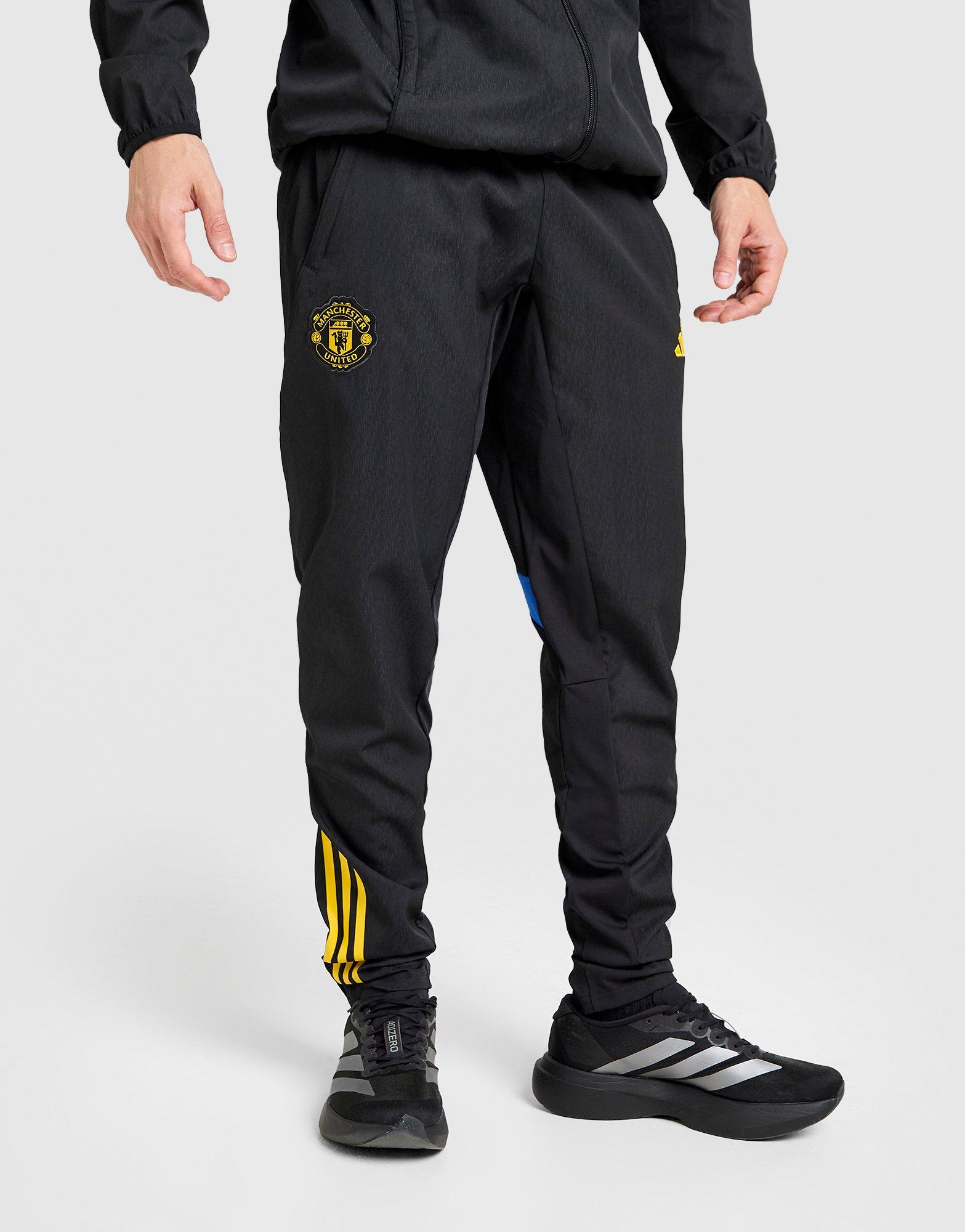 Get behind the Red Devils. These men's Manchester United FC Presentation Track Pants are cut from smooth, lightweight fabric. They've got an elasticated, drawcord waist to adjust the fit. AEROREADY tech to remove sweat. And zip pockets for storage. Finished with Tribe Yellow 3-Stripes, a Performance logo and a Manchester United crest. Machine washable. | JP3135
