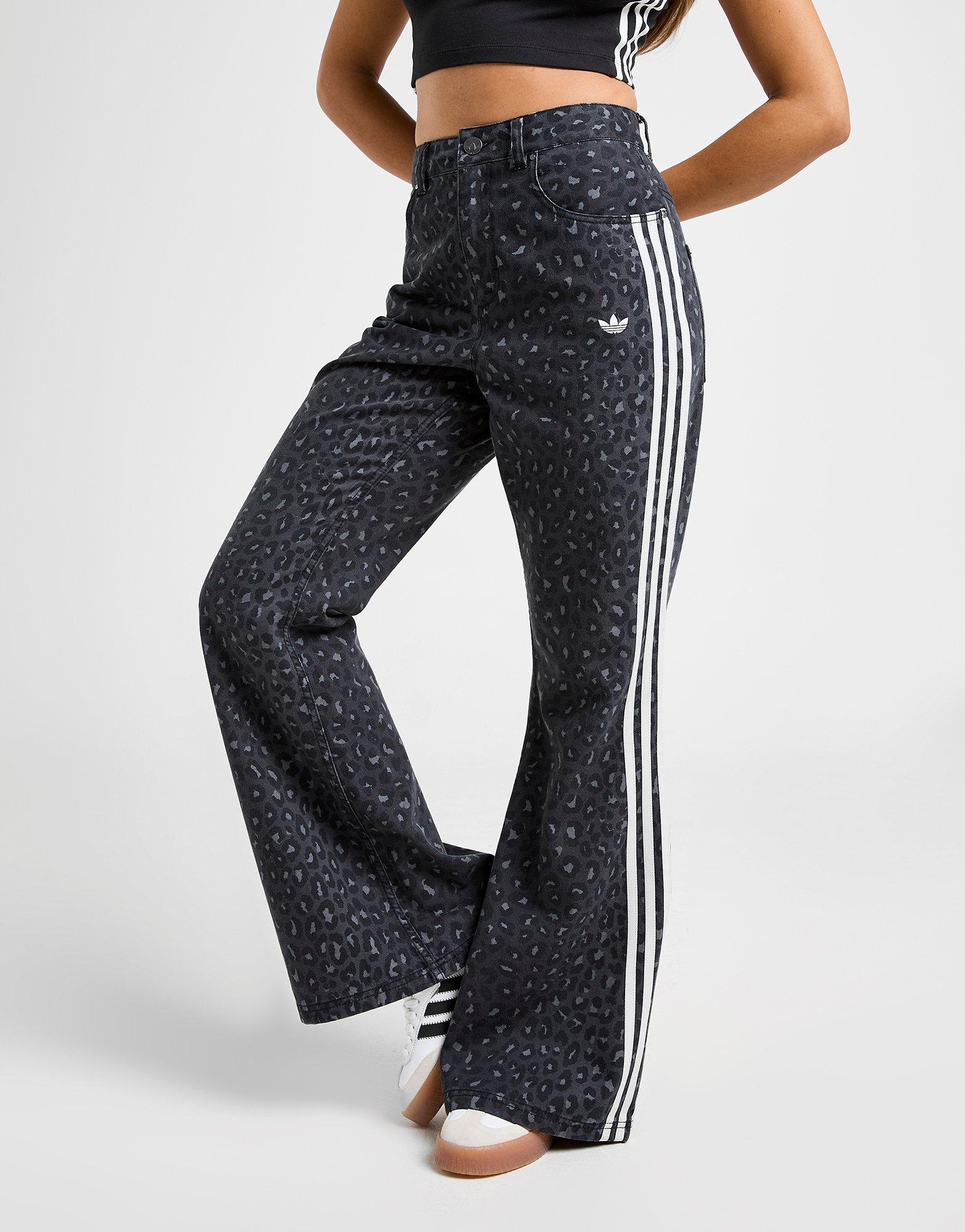 Get a fresh look with these women's Leopard Print Denim Jeans from adidas Originals. In a Black colourway, these relaxed-fit jeans are cut from a soft, lightweight denim fabric for lasting comfort. They have a mid-rise waistband and roomy wide legs for a laidback feel, with traditional five pocket styling. Finished with a tonal all-over leopard print, and signature adidas Originals branding. Machine washable. | Our model is 5'8" and wears a size S. | KA2679
