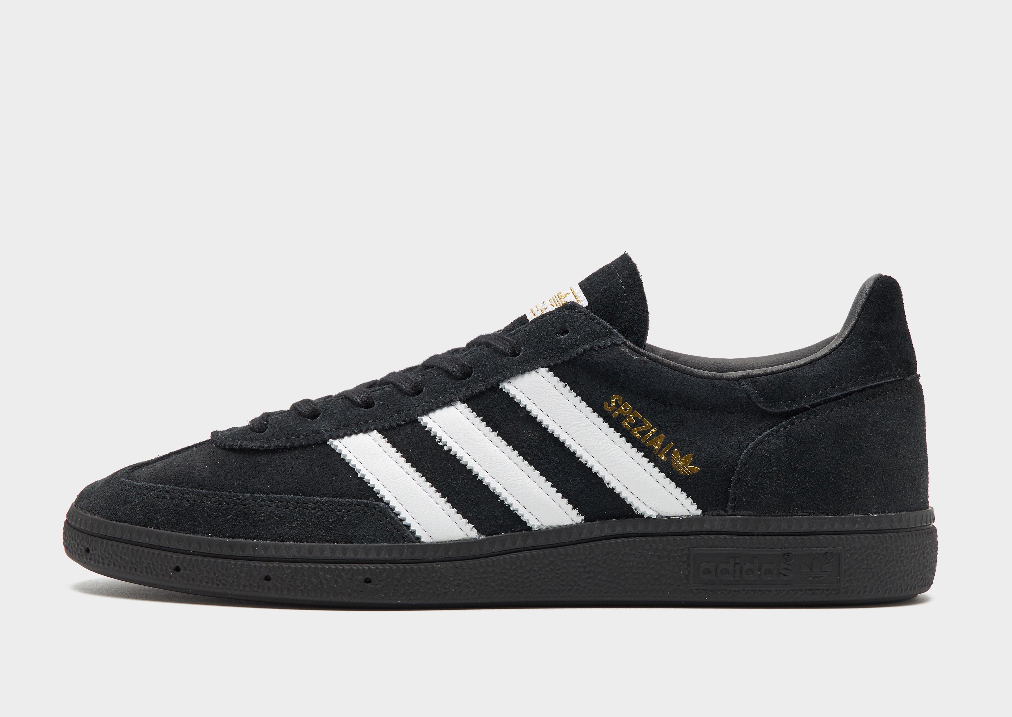From the terrace to the street, rep a classic look with these men's Handball Spezial shoes from adidas Originals. First introduced in 1979 for the speedy handball courts of Germany, the simple yet stylish silhouette quickly made it a go-to, iconic trainer. Landing in a Black colourway with tonal details, these JD-exclusive sneakers have an upper made with suede for durable wear. They feature a lace fastening with a padded ankle collar for a locked-in fit and sit on a lightweight midsole. With a gum rubber outsole for total traction, they're signed off with signature Adi 3-Stripes to the sidewalls. Style Code: HQ9194