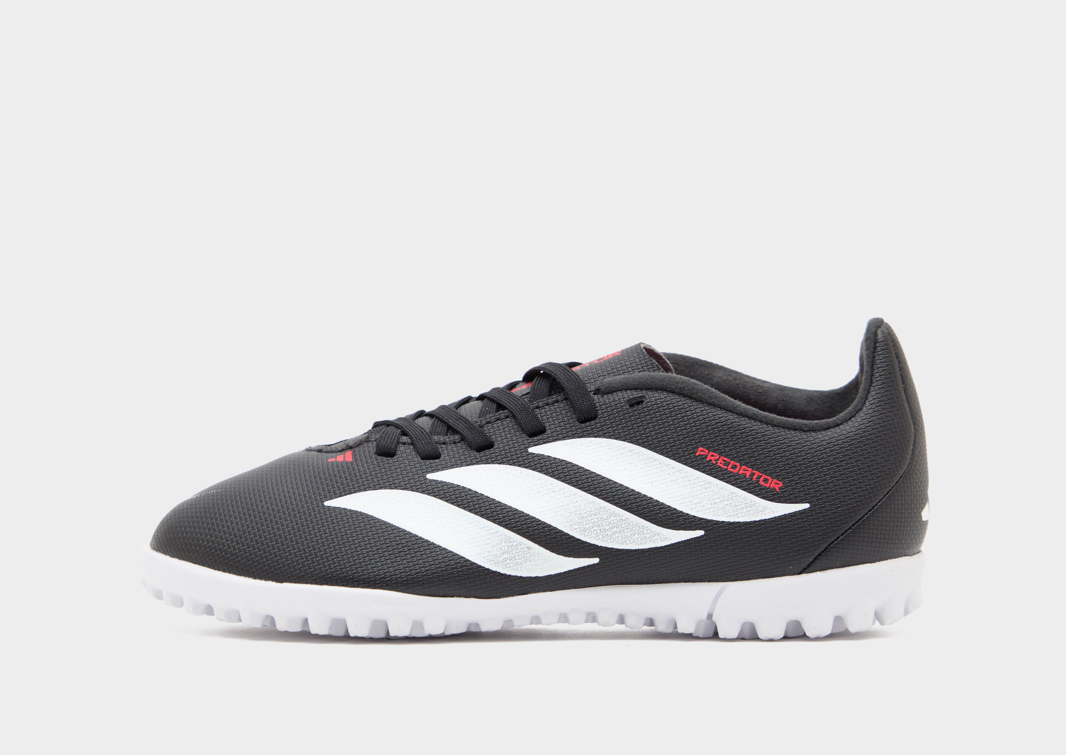 Lace the little one up in a pitch icon with these children's Predator Club TF football trainers from adidas. In black with white 3-Stripes and Lucid Red Predator branding, these mini boots have a soft yet textured synthetic upper for extra control of the ball. The cushioned insole keeps them comfy. While a studded rubber outsole keeps them going. | JS0365