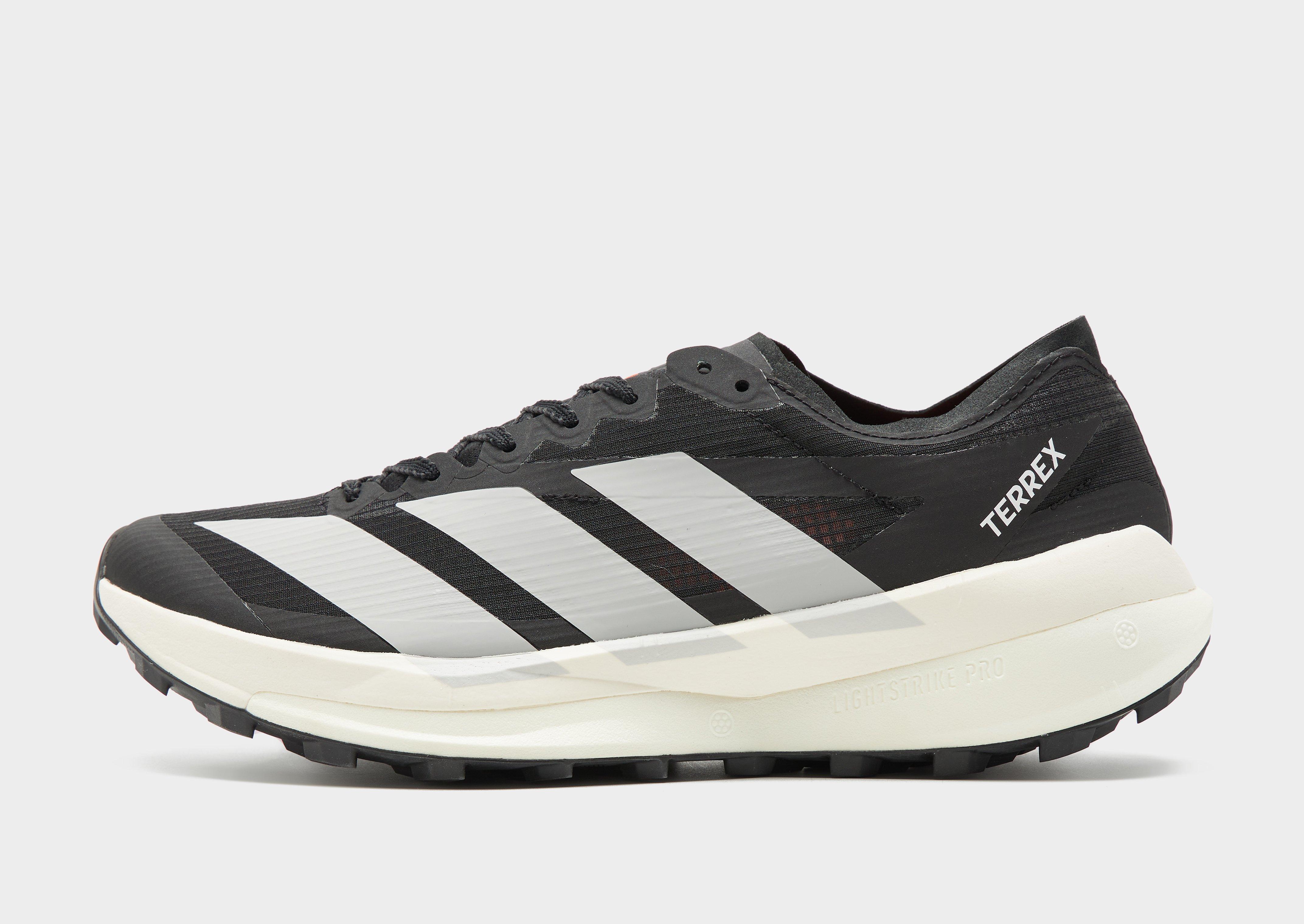 Responsive and supportive, these Terrex Agravic trail running shoes are built for logging miles and adventurous days on the trail in wet, muddy conditions. A Lightstrike 2.0 midsole provides responsive cushioning for stability and comfort on rough terrain, and the rocker shape promotes a smooth roll-off for a fluid pace. The Continental™ Rubber outsole with 4 mm lugged tread maintains secure footing across roots and rocks, wet or dry.