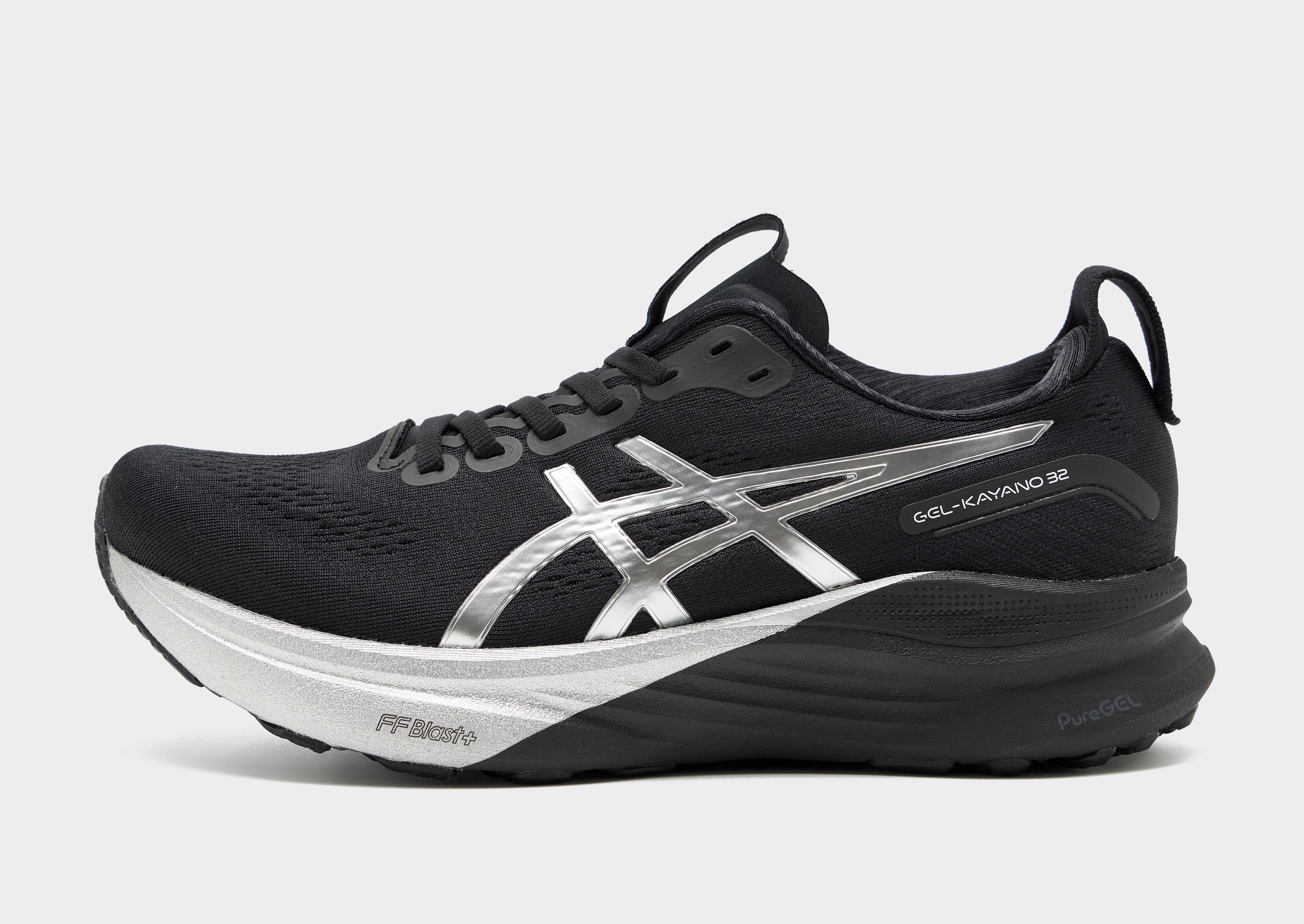 Hit the pavement in these women's ASICS Gel-Kayano 32 running shoes. Built for runners who demand both support and cushioning, they deliver adaptive stability with premium comfort underfoot for long-distance performance. The ASICS 4D GUIDANCE SYSTEM in the midsole keeps your stride steady and controlled, while PureGEL technology offers superior shock absorption to protect your joints on every step. FF BLAST PLUS ECO foam provides soft landings and responsive energy return, making tough runs on hard surfaces feel effortless. Style Code: 1012B979.001