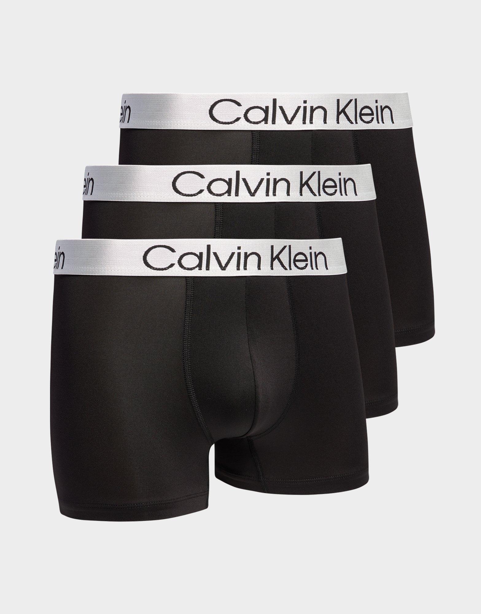 Add a premium edge to your everyday essentials with this men's 3-Pack Trunks from Calvin Klein. These slim-fit trunks come in a Black colourway, and are made with soft stretch-cotton for lasting comfort. They have a contrasting elasticated waistband for a secure fit, and are finished with contrasting, shiny Calvin Klein branding around the waist. Machine washable. | Please note: for hygiene reasons, underwear cannot be returned.