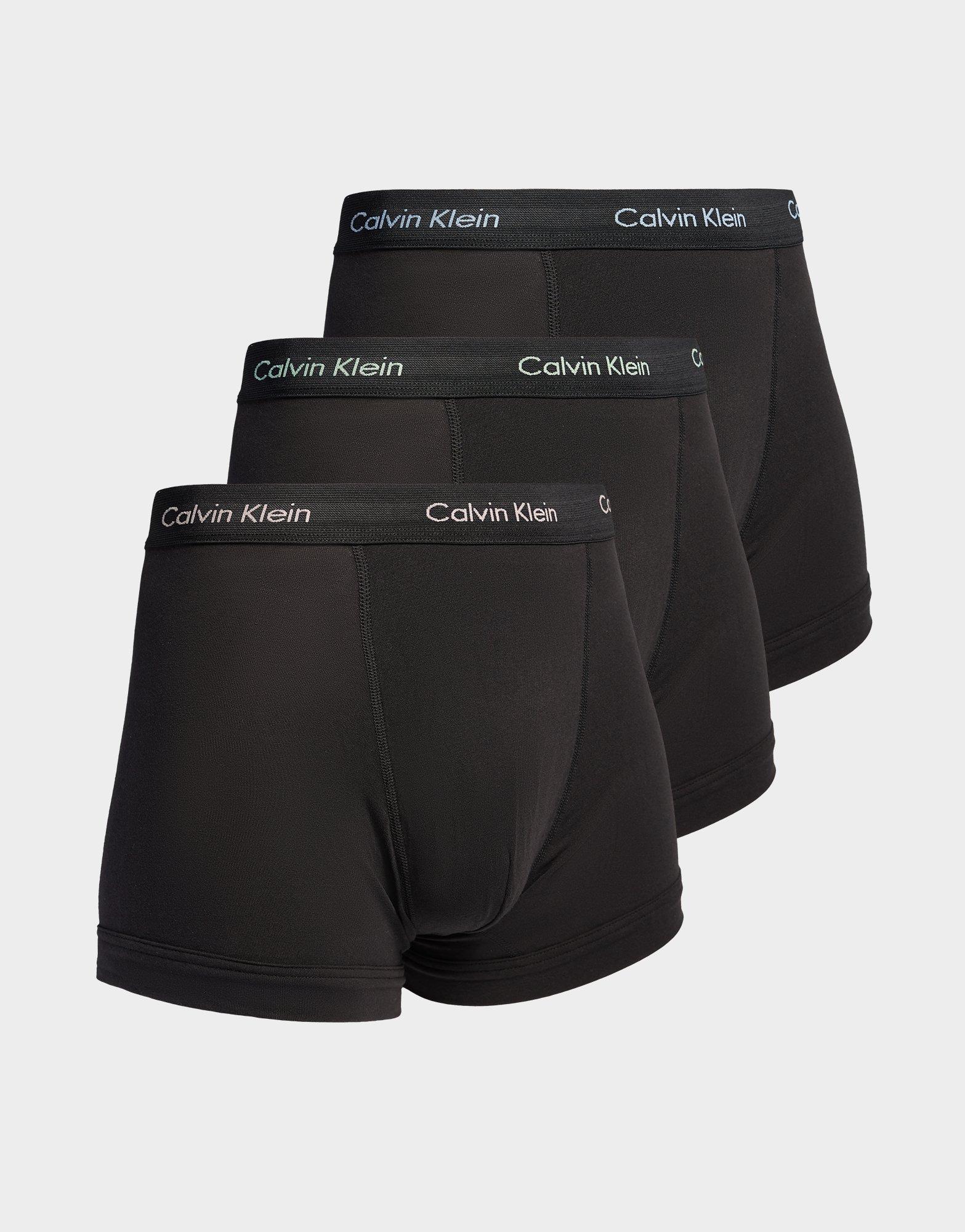 Add a premium edge to your everyday essentials with this 3 Pack of men's Cotton Stretch Trunks from Calvin Klein. These slim-fit trunks come in a Black colourway, and are made with soft stretch-cotton for lasting comfort. They have a tonal elasticated waistband for a secure fit, and are finished with coloured Calvin Klein branding around the waist. Machine washable. | Please note: for hygiene reasons, underwear cannot be returned.