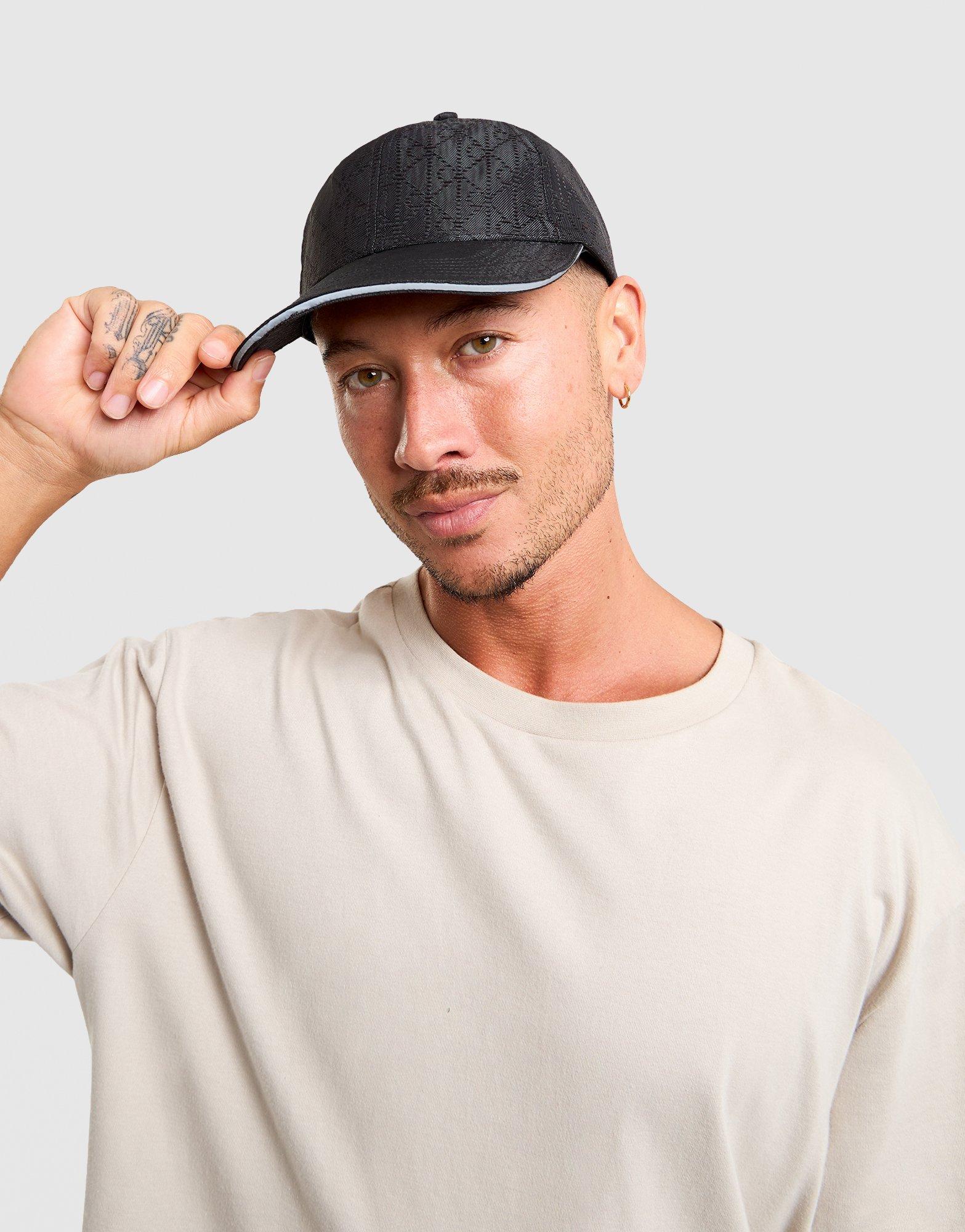 Built for durability with a sleek designer finish, this Calvin Klein cap is crafted from tough Cordura nylon - lightweight, abrasion-resistant, and made to handle daily wear. The all-over tonal CK monogram adds a subtle luxury statement, giving the classic six-panel silhouette a modern edge. A curved brim keeps the look clean and athletic, while embroidered eyelets enhance airflow for all-day comfort. Finished in a deep black colourway that pairs effortlessly with elevated streetwear and minimalist fits. A refined take on performance-grade headwear with unmistakable Calvin Klein style. Style Code: 4D5049G_UB1