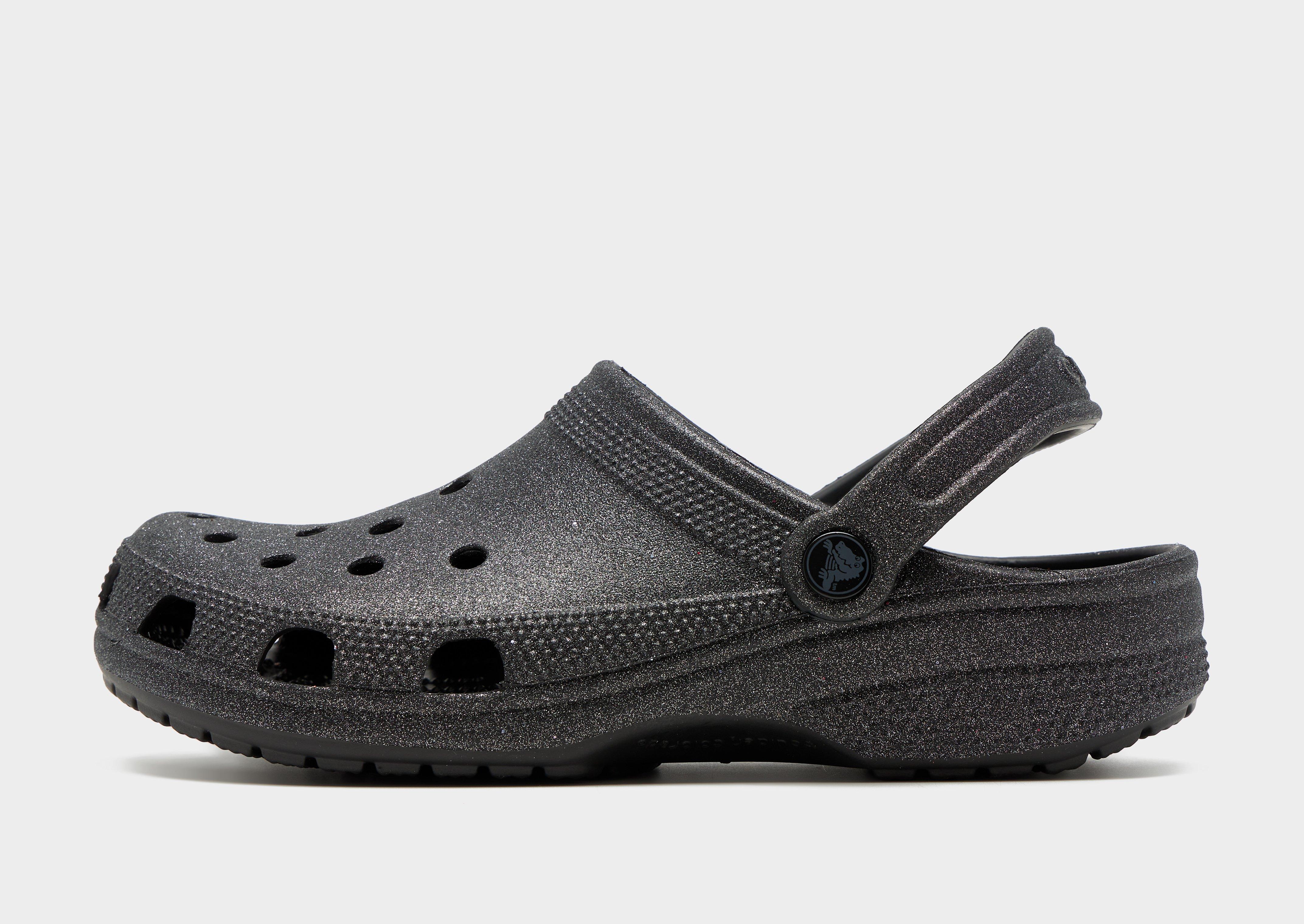 Bring everyday comfort with a twist with these women’s Crocs Classic Clogs in Black with Glitter finish. Designed with iconic Crocs cushioning and ventilation ports for breathability, they keep feet comfy from home to holidays. The sparkle‑trimmed upper adds playful style to the timeless clog shape, making them perfect for both laid‑back days and standout casual looks. A go‑to choice in women’s everyday footwear with a touch of fun. Style Code: 205942‑0WHW