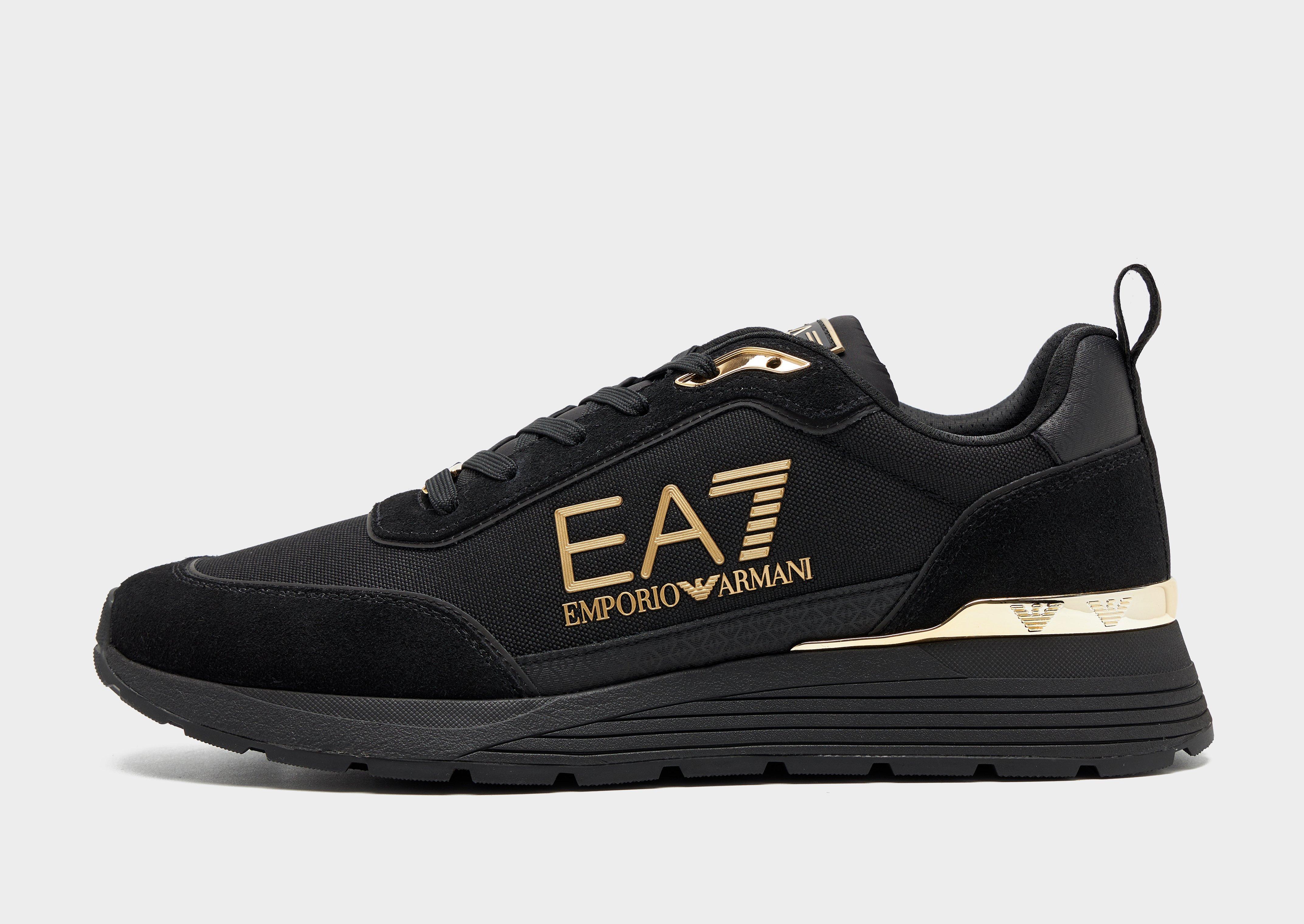 Add some premium style to your rotation with these men's B&W Mono trainers from Emporio Armani EA7. In a Black and Gold colourway, these JD-exclusive sneaks are made with a mesh upper with synthetic overlays for a breathable wear that keeps your feet supported. With tonal lacing for a locked-in fit, these creps are sat on a white midsole for responsive cushioning in every step. With a grippy outsole and a heel pull tab for an easy fit, these creps are finished with gold-tone EA7 branding to the sidewalls and midsole.