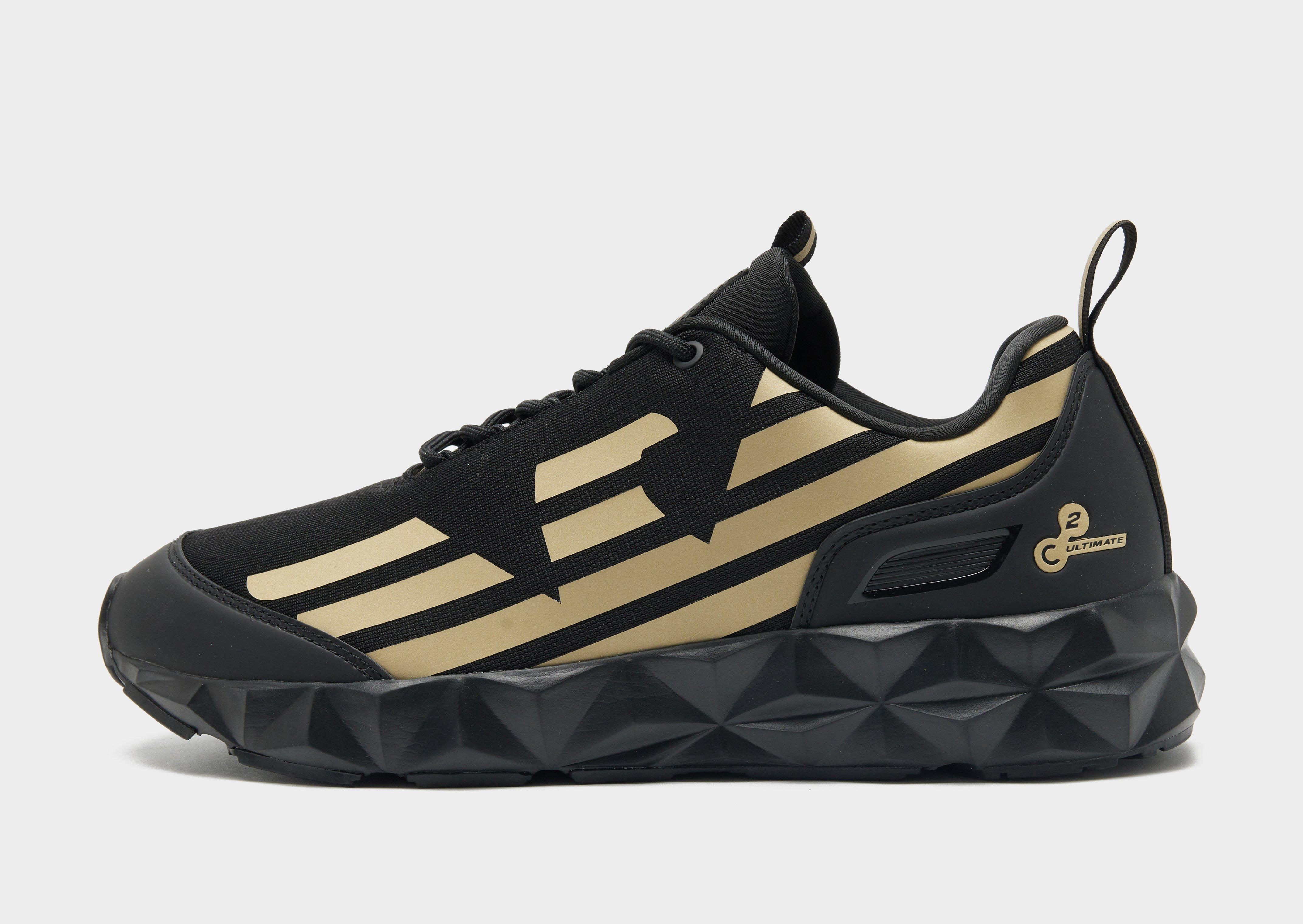 From the gym to the streets, upgrade your workouts with these men's Kombat trainers from Emporio Armani EA7. In a Black colourway, these chunky yet lightweight runners have a breathable mesh upper and synthetic heel and toe supports to stabilise every stride. They're sat above a memory foam midsole for a super-smooth ride and lasting cushioning, while the rubber outsole adds essential grip. Finished off with a tonal lace-up fastening and Gold oversized EA7 branding at the sidewall.