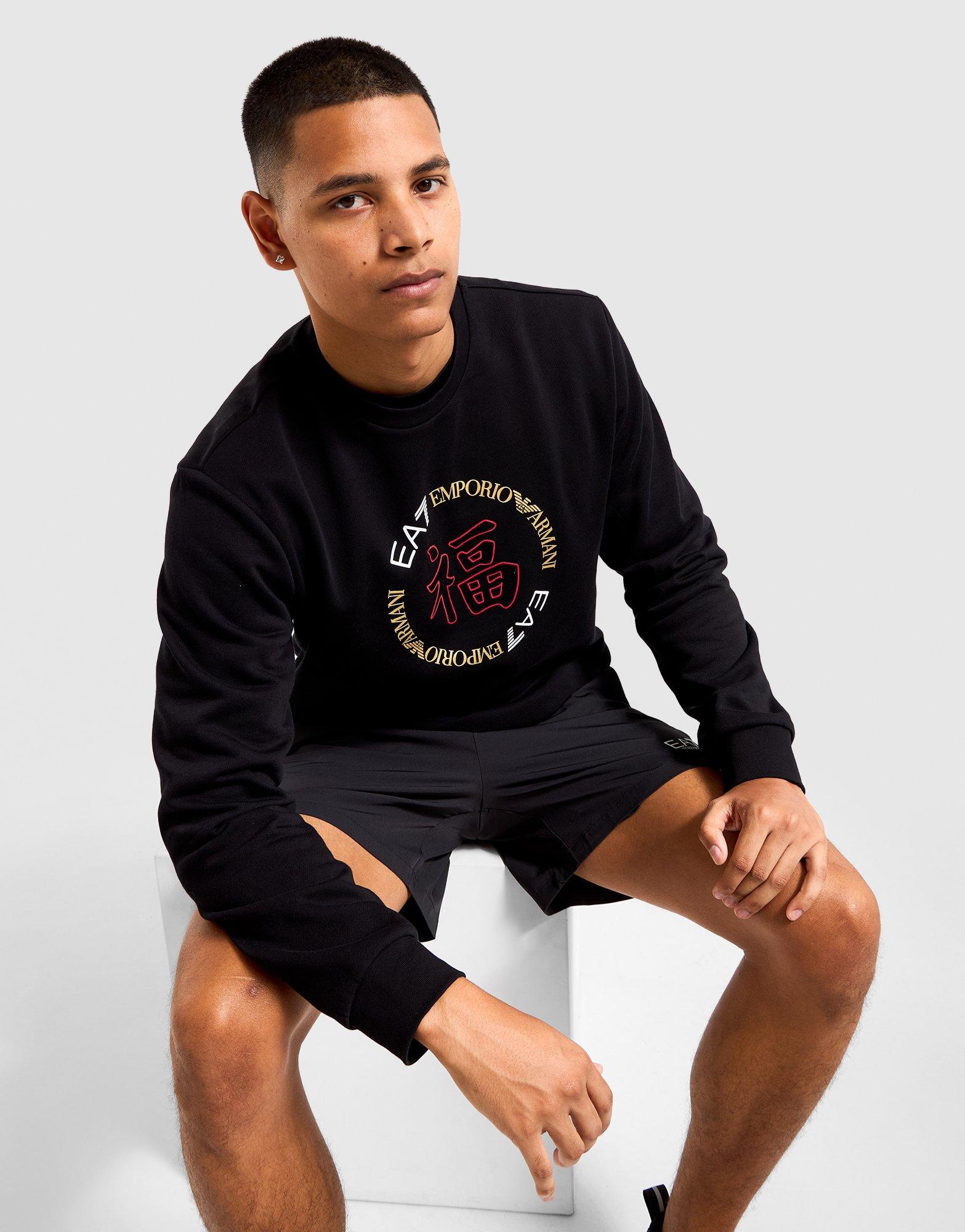 Celebrate in style with this men's Ea7 crew sweatshirt, exclusive to JD for a bold Lunar New Year-inspired look. Standard fit pairs with long sleeves finished in ribbed cuffs for a secure, comfortable feel. Black colourway features striking front and back logo graphics in gold and red for maximum impact. Soft cotton-blend fabric ensures all-day comfort whether you're training or relaxing. A statement piece that honors heritage while keeping your rotation fresh. Celebrate Year of the Horse in style!