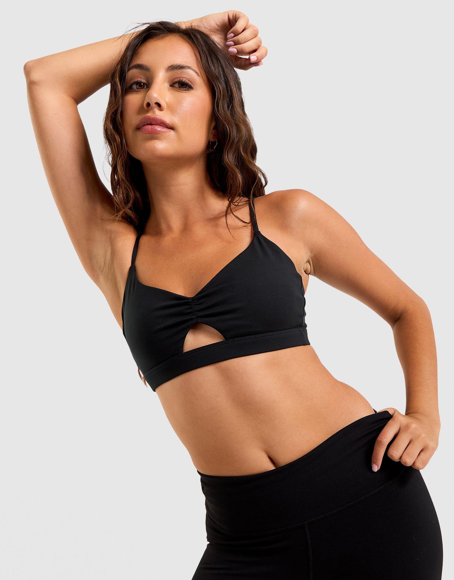 Bring style to your sessions with this women’s Fabletics Cut-Out Sports Bra, crafted from PureLuxe fabric for soft, supportive performance. The standard fit ensures comfort that lasts all day. The sleek black colourway is easy to style with any workout kit. Finished with cut-out details, it’s built to stand out both in and out of the gym.