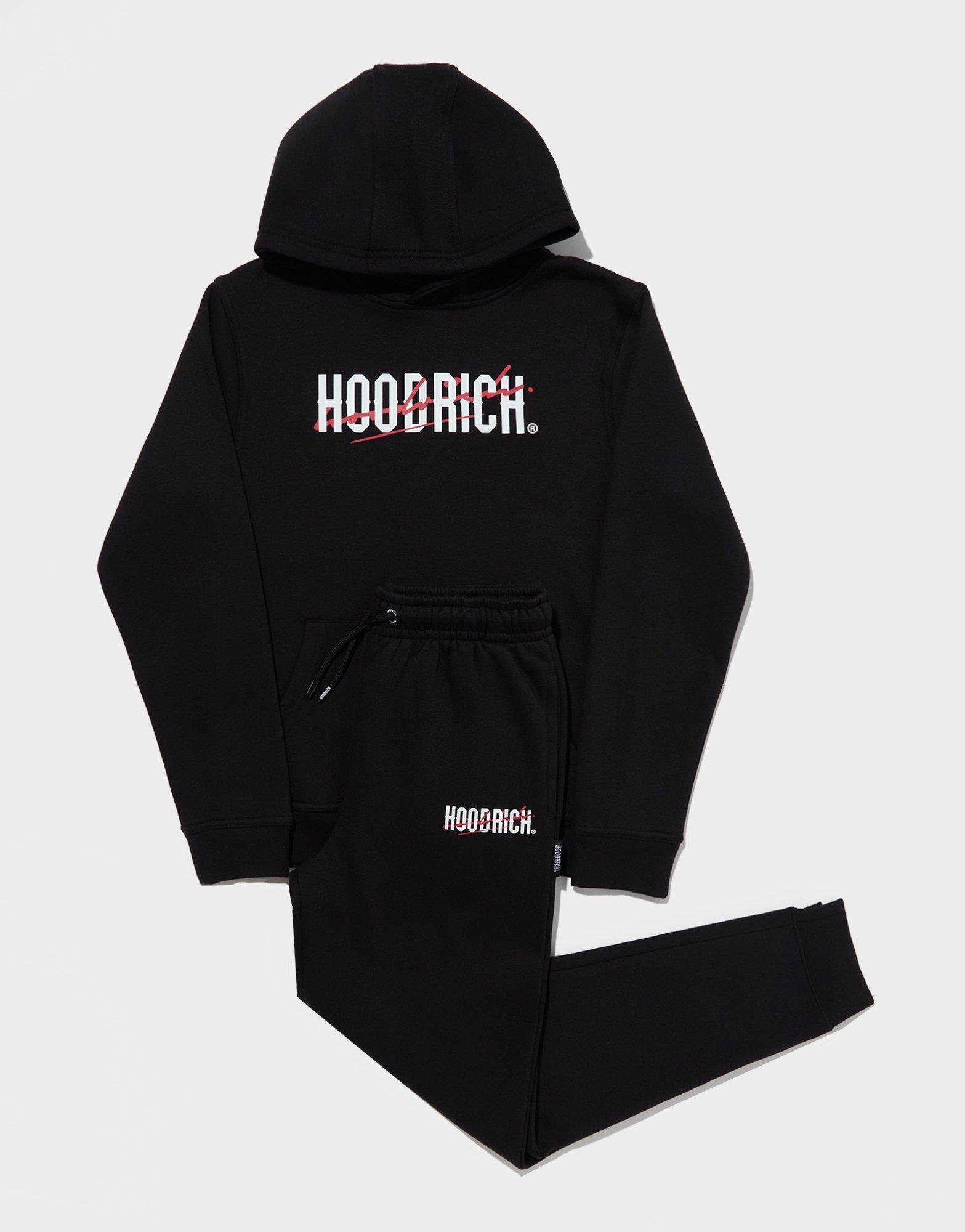 Get them ready for action with this junior's Hoodrich Overhead Set Lynk, exclusive to JD. Featuring a standard fit tracksuit combo, it delivers comfortable, coordinated sportswear in black with white and red accents. The matching hoodie and bottoms make it perfect for casual days or active play. Built with Hoodrich quality and contemporary streetwear styling, this set is an essential addition to their wardrobe. Style Code: HJ-0225-0111