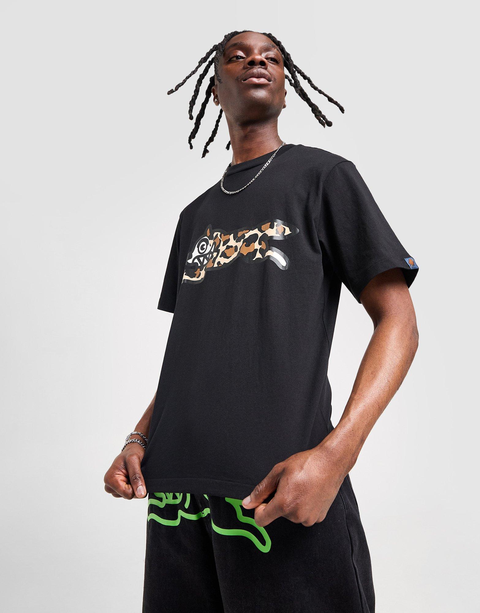 Step up your street style with this men's Running Dog T-Shirt from ICECREAM. In a Black colourway, this standard-fit tee is cut from soft cotton fabric for total comfort. It features short sleeves with a ribbed crew neckline and is finished up with a leopard print Running Dog graphic to the chest. Machine washable | Our model is 6'0" with a 35" chest and wears a size M.
