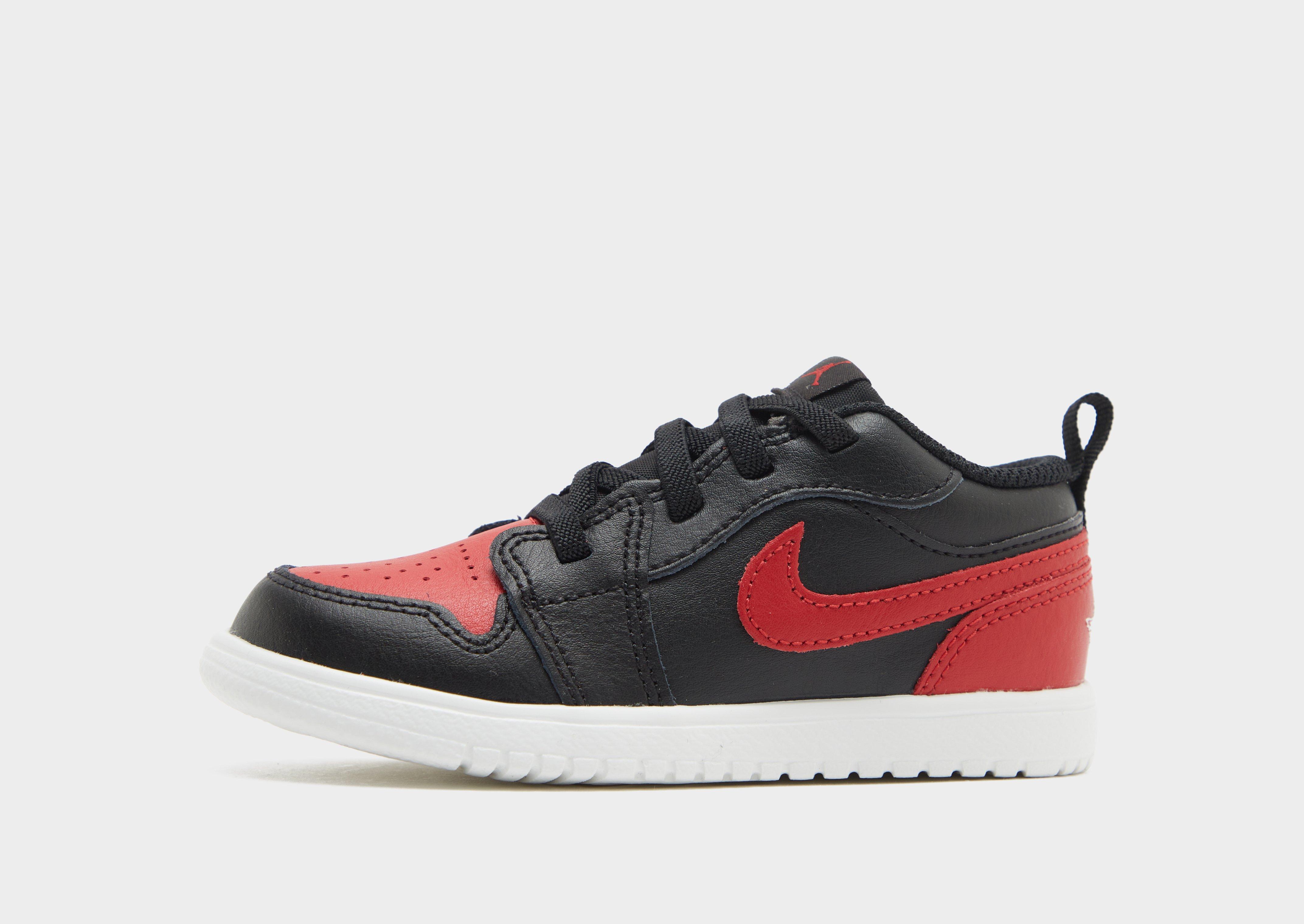 Level up your little one's rotation with these infants' Air 1 Low Alt trainers from Jordan. In a Black and Varsity Red colourway, these kicks have a durable leather upper for lasting wear. They have elastic laces with a hook-and-loop fastening for an easy fit, and a pull loop to the heel. They sit above a lightweight foam midsole for cushioning underfoot, while a rubber tread offers easy traction. Finished with signature Nike and Jordan branding.