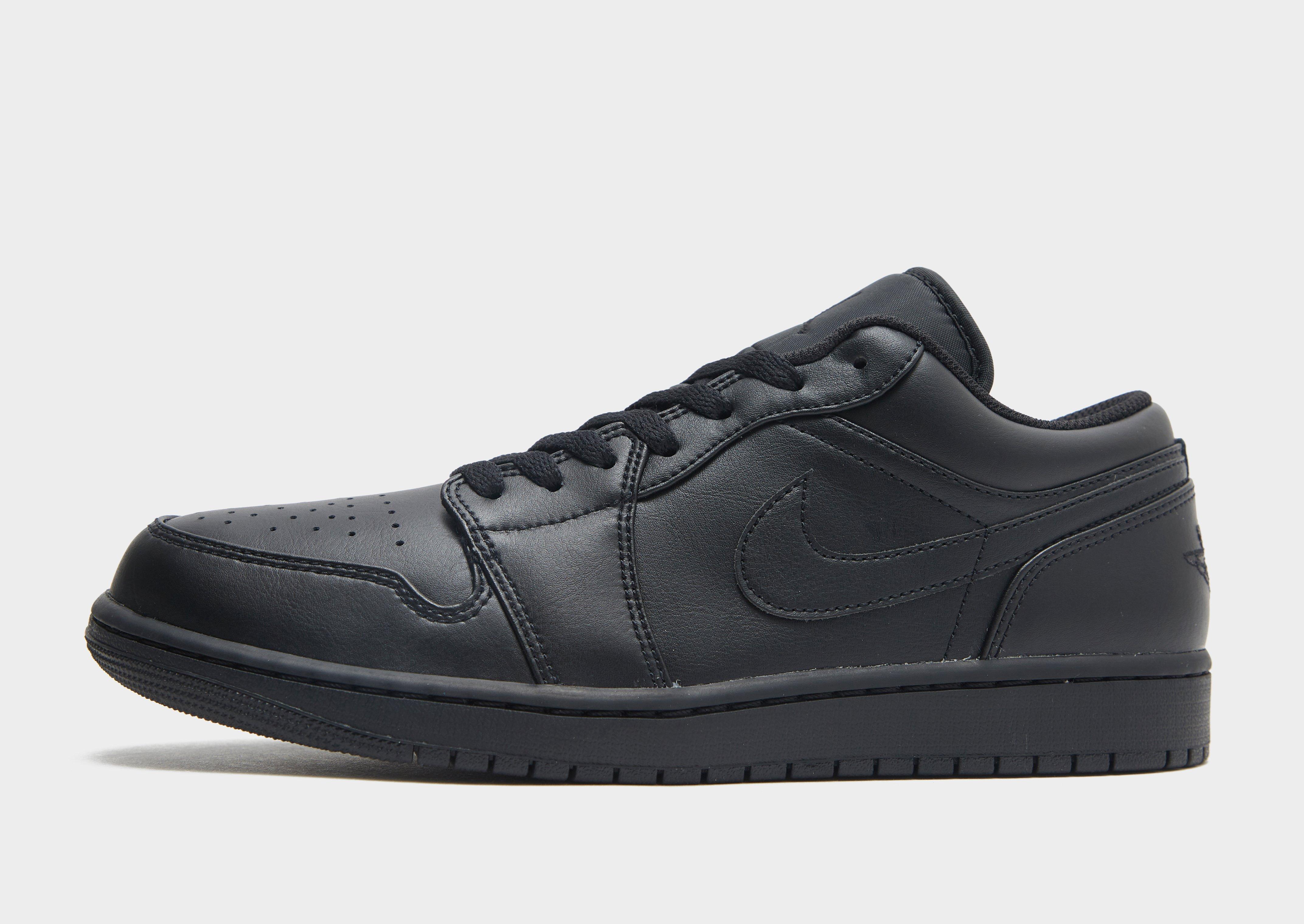 Inspired by the '85 OG, these men's Air 1 Low trainers from Jordan keep it classic. In a triple Black colourway, these low-profile sneakers keep the OG design lines with a leather and synthetic upper. They feature breathable perforations, a tonal lace up fastening and a padded ankle collar for snug comfort. Sat on a tonal midsole, these kicks have encapsulated Air cushioning for supreme comfort every time you lace up. Finished with a grippy rubber tread, signature Jordan branding and the iconic Swoosh logo to the sidewalls.
