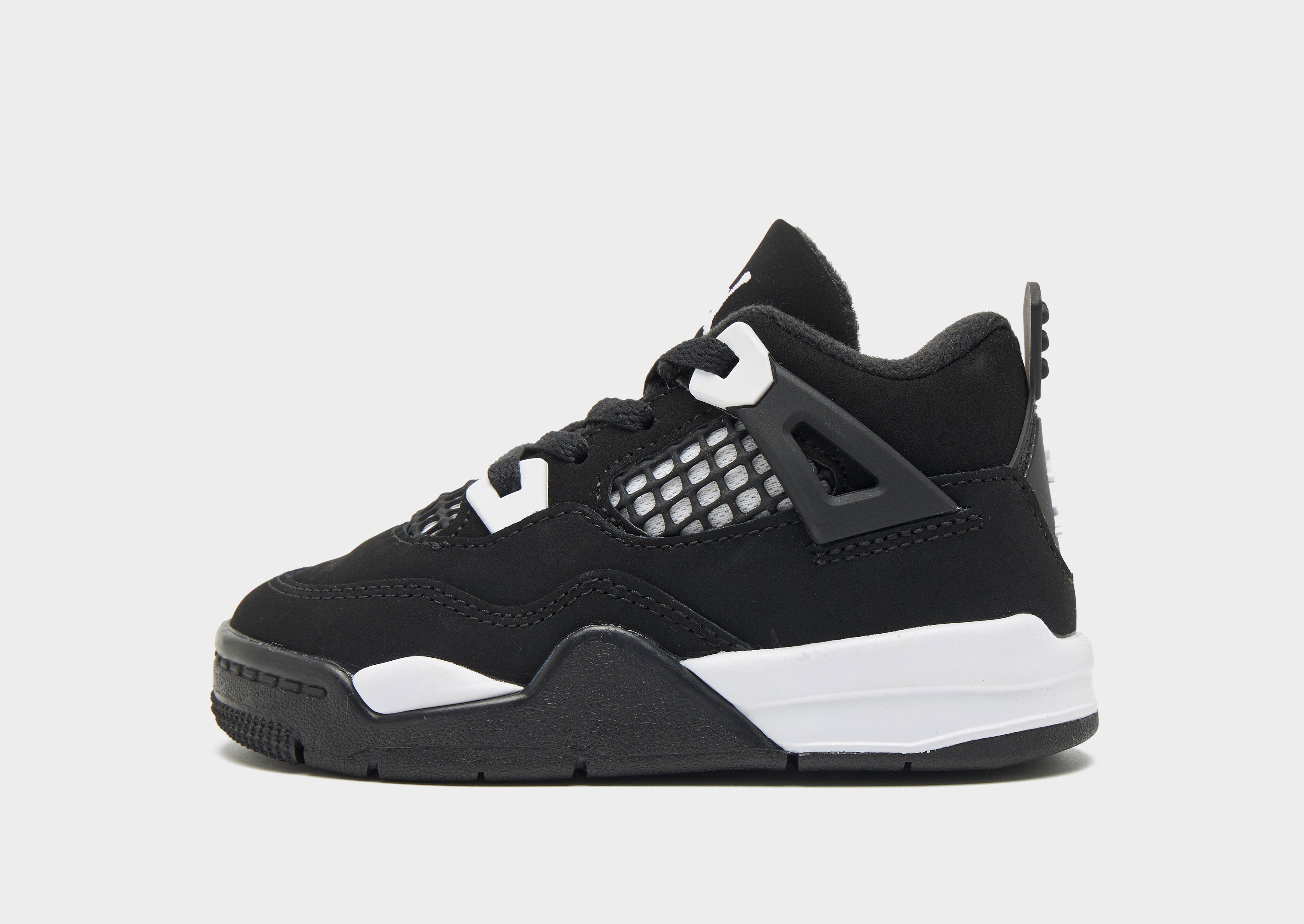 Level up your sneaker rotation with the iconic Air Jordan 4. With its distinctive silhouette and bold colourways, this shoe has become a symbol of sneaker culture and streetwear fashion. Landing in a Black colourway, these infant's sneakers have a durable canvas upper for a clean and classic look. They feature a lace fastening with a padded ankle collar for a snug, supportive feel. Underfoot is a soft foam midsole with a visible Air-Sole unit to the heel for cushioned comfort with every step. With a paint-splatter pattern to the rubber outsole for a statement style and traction, they're finished up with Jordan branding to the tongue.