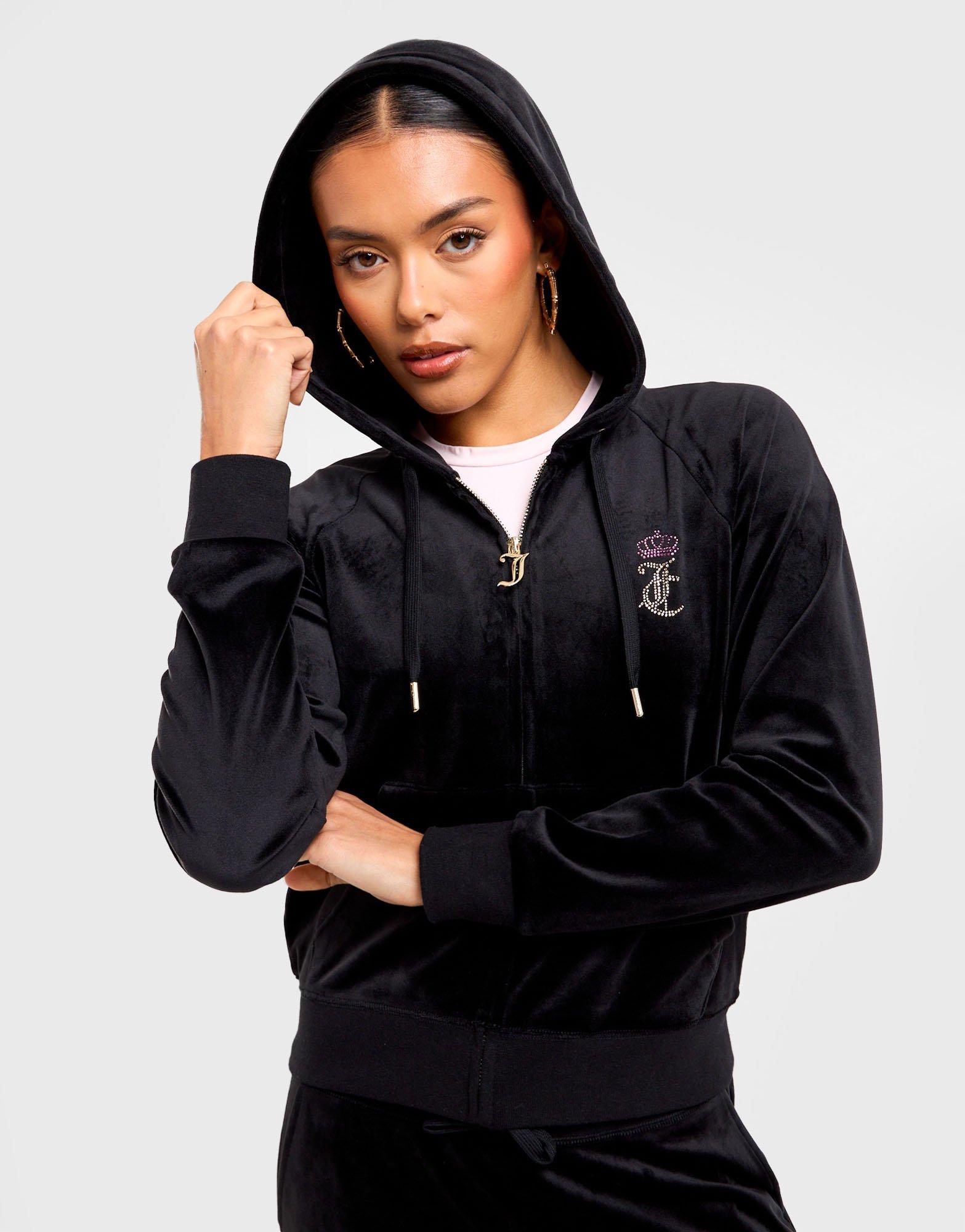 Add some premium heat to your wardrobe with this women's Velour Full Zip Hoodie from Juicy Couture. Keep it premium and rep a retro vibe with Juicy Couture, an icon since the ‘90s known for its signature velour and unmissable diamante branding.
