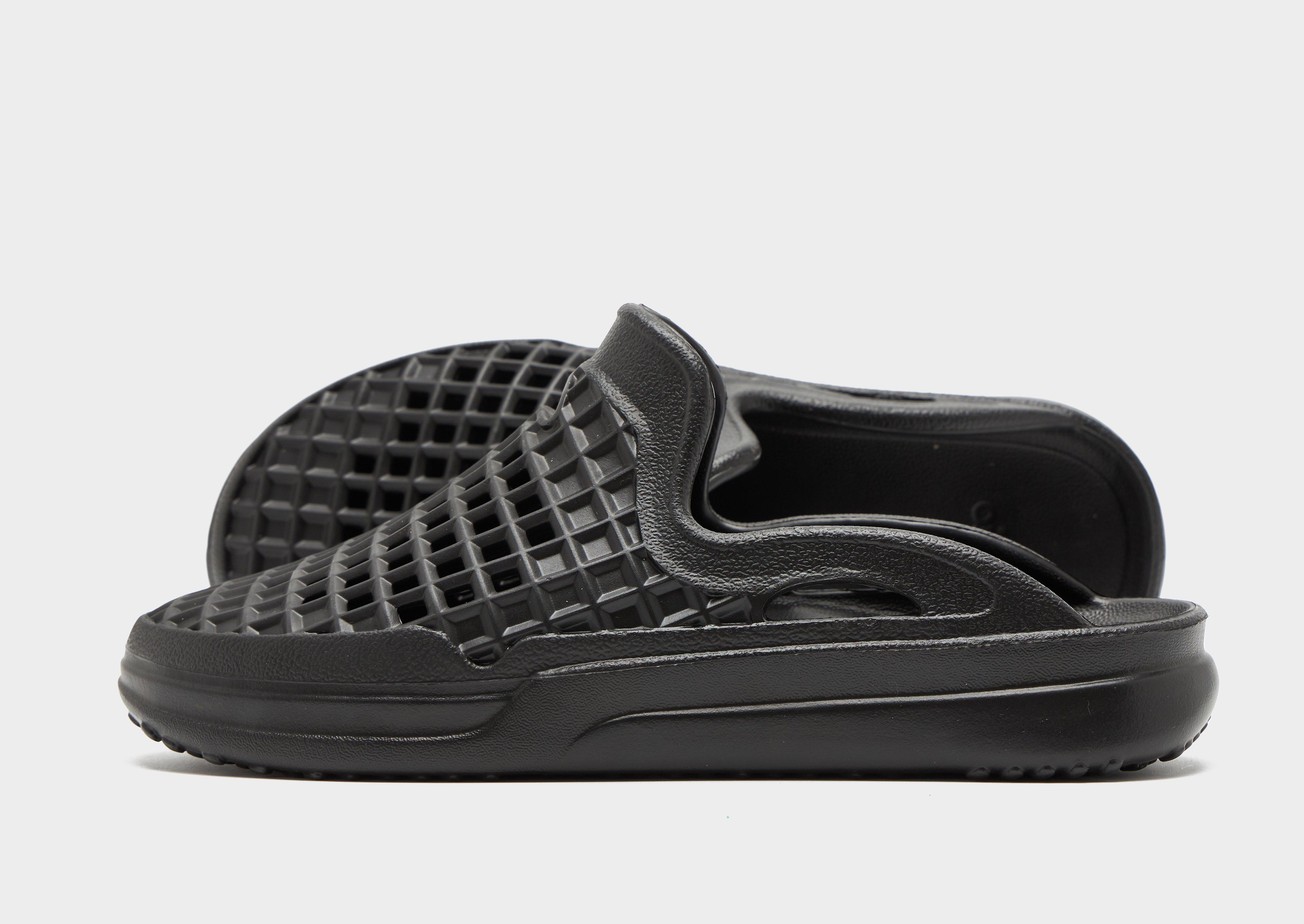 Slide into a laidback look with these men's Scenario Slides from Lusso Cloud. In a Black colourway, these slip-on slides are made from lightweight, waterpoof EVA material for durability. The feature moulded arch support for comfort, whilst the treat underfoot provides great traction, even on wet surfaces. Style Code: SCENARIOSLDJET