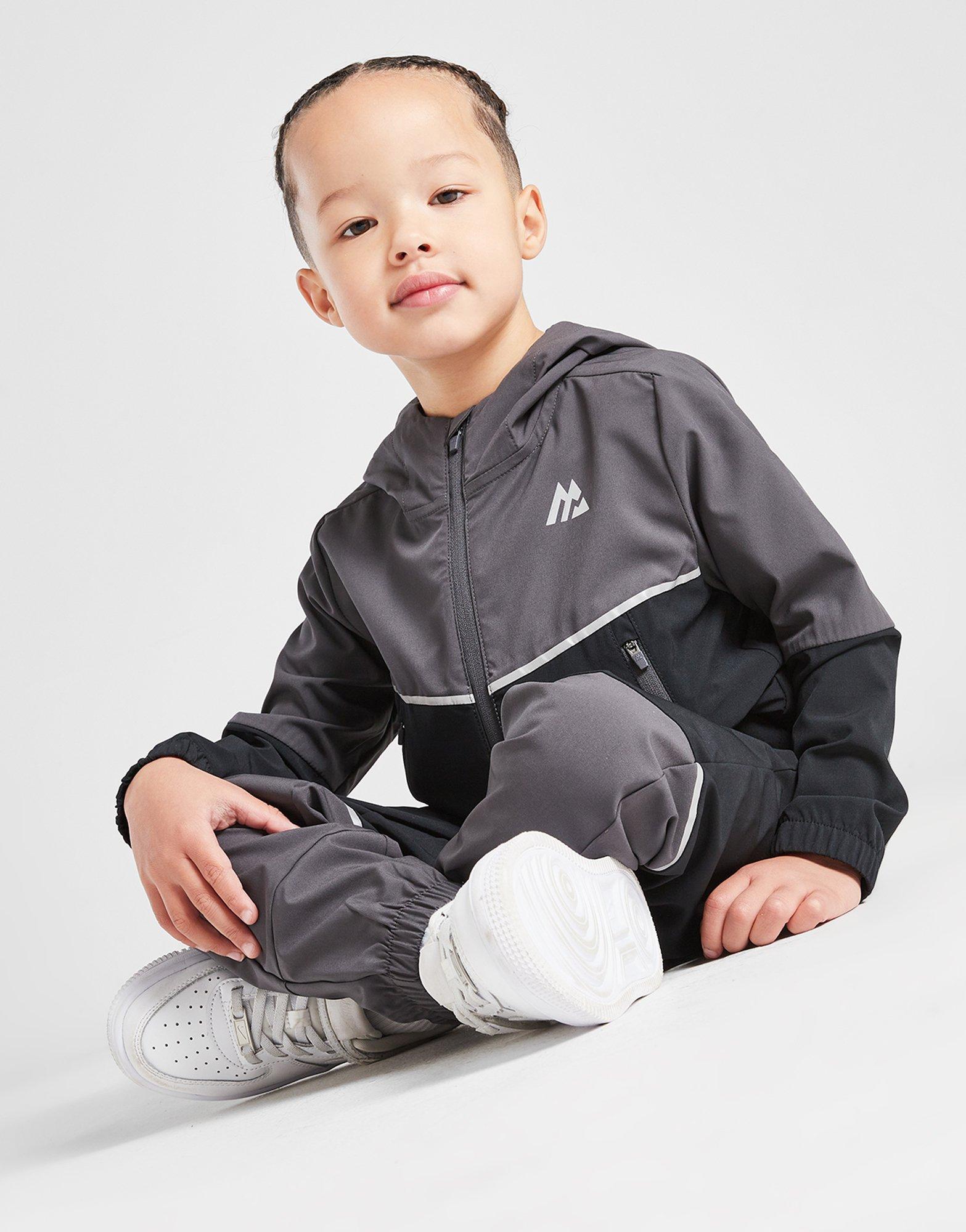 Add some street-ready style to their off duty 'fits with this children's Trek Woven Full Zip Set from Montirex. In a Black colourway, this set is made from smooth and stretchy poly fabric for lasting comfort. It features a full zip fastening and a hood so they can adjust the coverage, with side zippered pockets for storage. The matching track pants have an elasticated waistband for easy wear, with ribbed trims to hold the shape. Finishing up, they're both are finished up with signature Montirex branding. Machine washable.