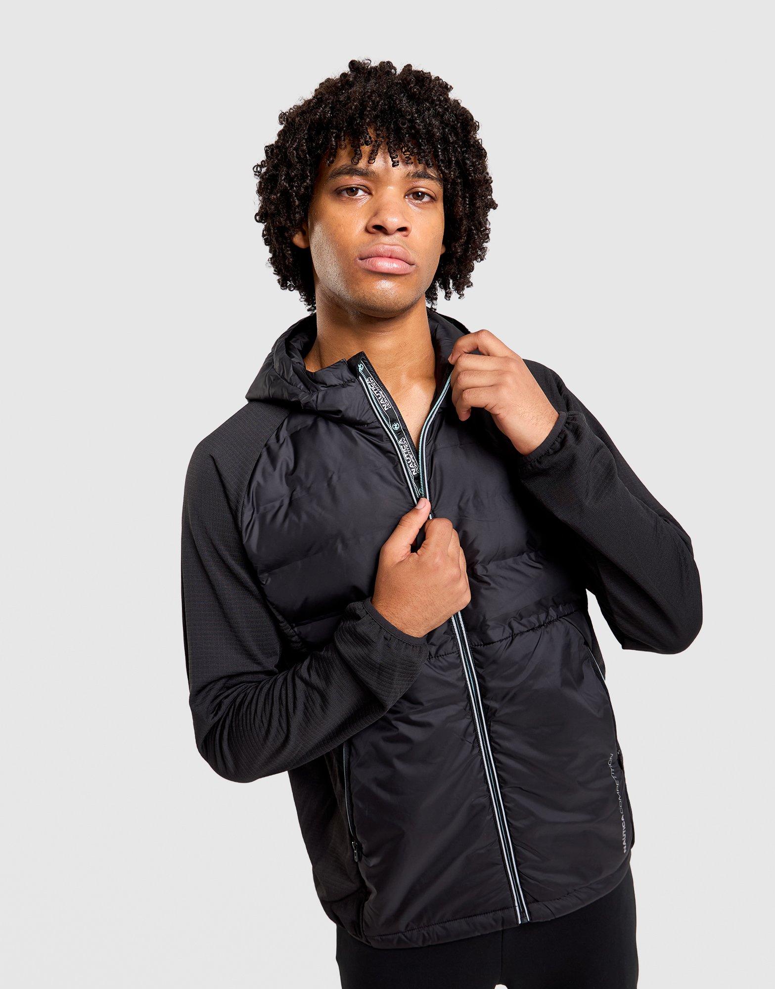The Nautica Padded Hooded Full-Zip Jacket is the men's outerwear piece that handles the cold without making the outfit look like an afterthought. Made from water-resistant stretch fabric that repels water, it features a removable hood, full-zip closure, zip side pockets and a post-consumer recycled polyester fill for warmth that travels light. The black with grey and white colourway keeps it versatile enough to work over anything from a jogger set to smart casual pieces, and the classic fit gives it a clean, easy silhouette. A reliable mid-season or layering piece for men who want performance and polish from the same jacket.
