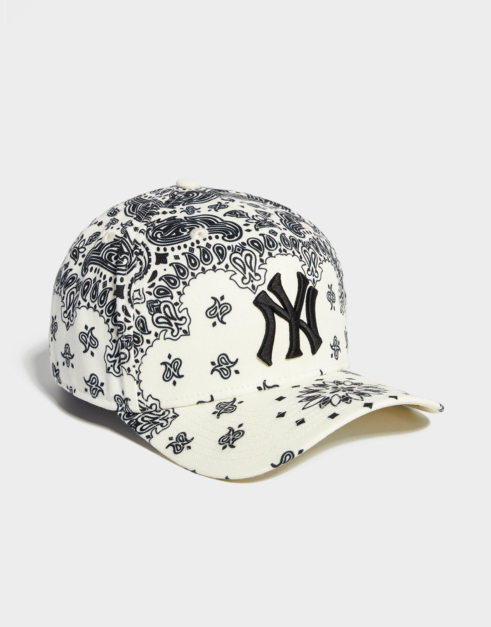 Upgrade your 'fits with this MLB New York Yankees 9FORTY Cap from New Era. In a White colourway with Paisley details throughout, this JD-exclusive, cap is made with soft but durable woven cotton for lasting wear. With a stitched panel construction, it has breathable eyelets through the crown and a pre-curved visor for a classic look. It has an adjustable back strap for a custom fit, and is finished with a White Yankees logo at the front. Signed off with New Era branding. Style Code: 14873883