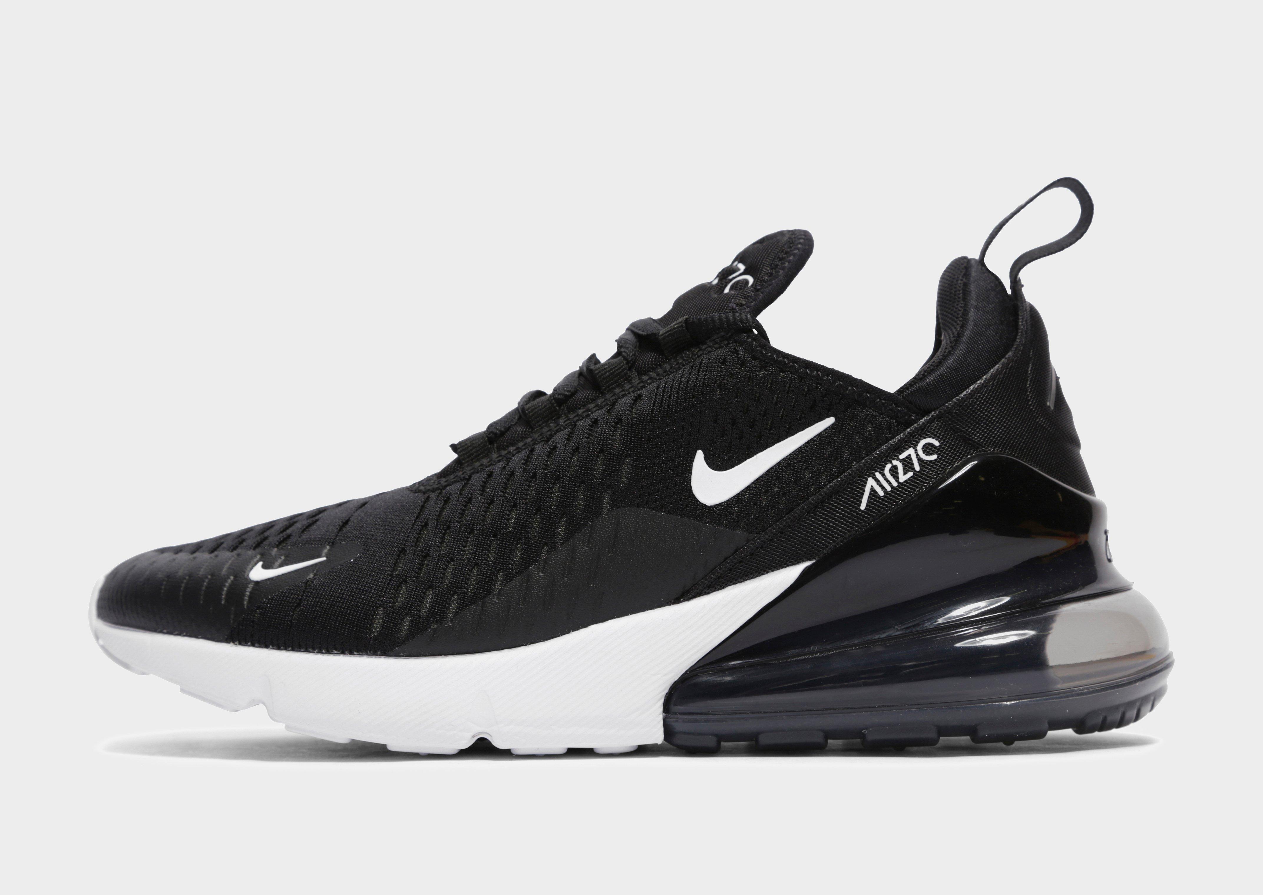 Take your Swoosh sneakers next-level with these women's Air Max 270 creps from Nike. In a black colourway, these sneakers are made with a textile upper which gives you a supportive and breathable wear. Sat on a chunky foam midsole which has the tallest ever visible Air unit to the heel, these trainers keep your feet cushioned in every step. With a grippy outsole, tonal laces, and a heel pull tab, these sneakers are finished with Air 270 branding to the tongue and heel, along with Swoosh branding to the sidewalls.