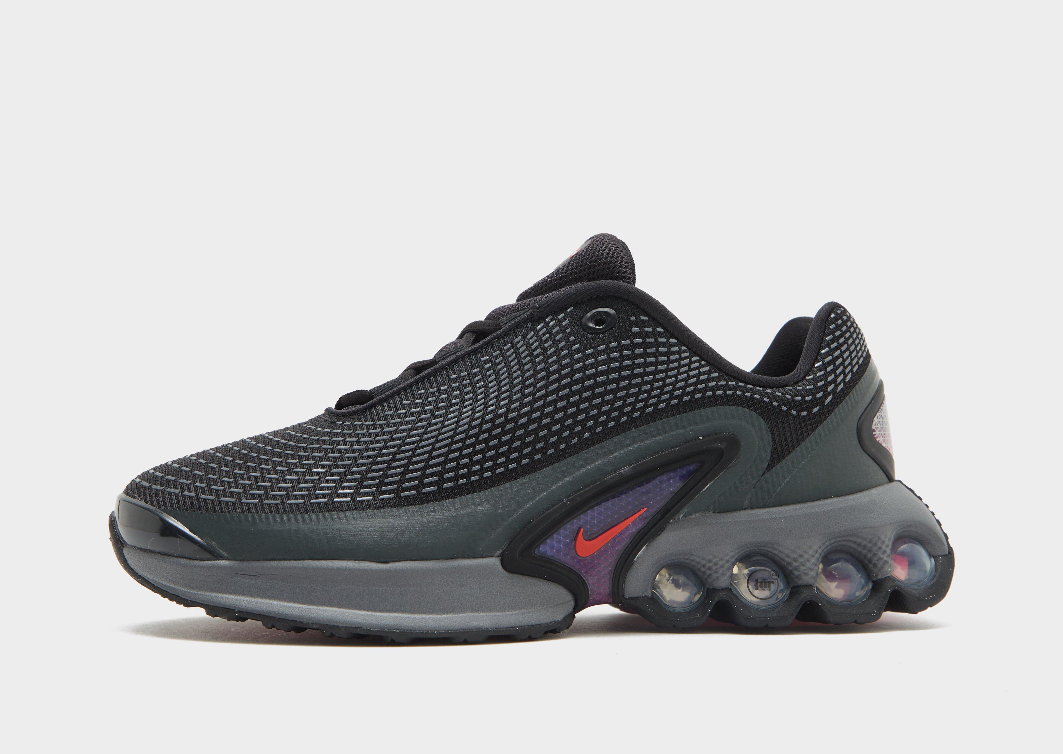 Freshen up your kick rotation with these juniors' Air Max Dn trainers from Nike. In an Anthracite, Dark Smoke Grey, Metallic Silver and Light Crimson colourway, these sneaks have a multilayered mesh upper that's light and breathable upper with a textured look. They feature a lace fastening to keep you locked in, with a padded ankle collar for extra support. Underfoot, the Dynamic Air unit system uses dual-pressure tubes to shift air for a responsive ride, while the grippy rubber outsole offers total traction on the streets. Finishing up, they're signed off with Air Max branding to the tongue and heel, with the Swoosh to the sidewalls.