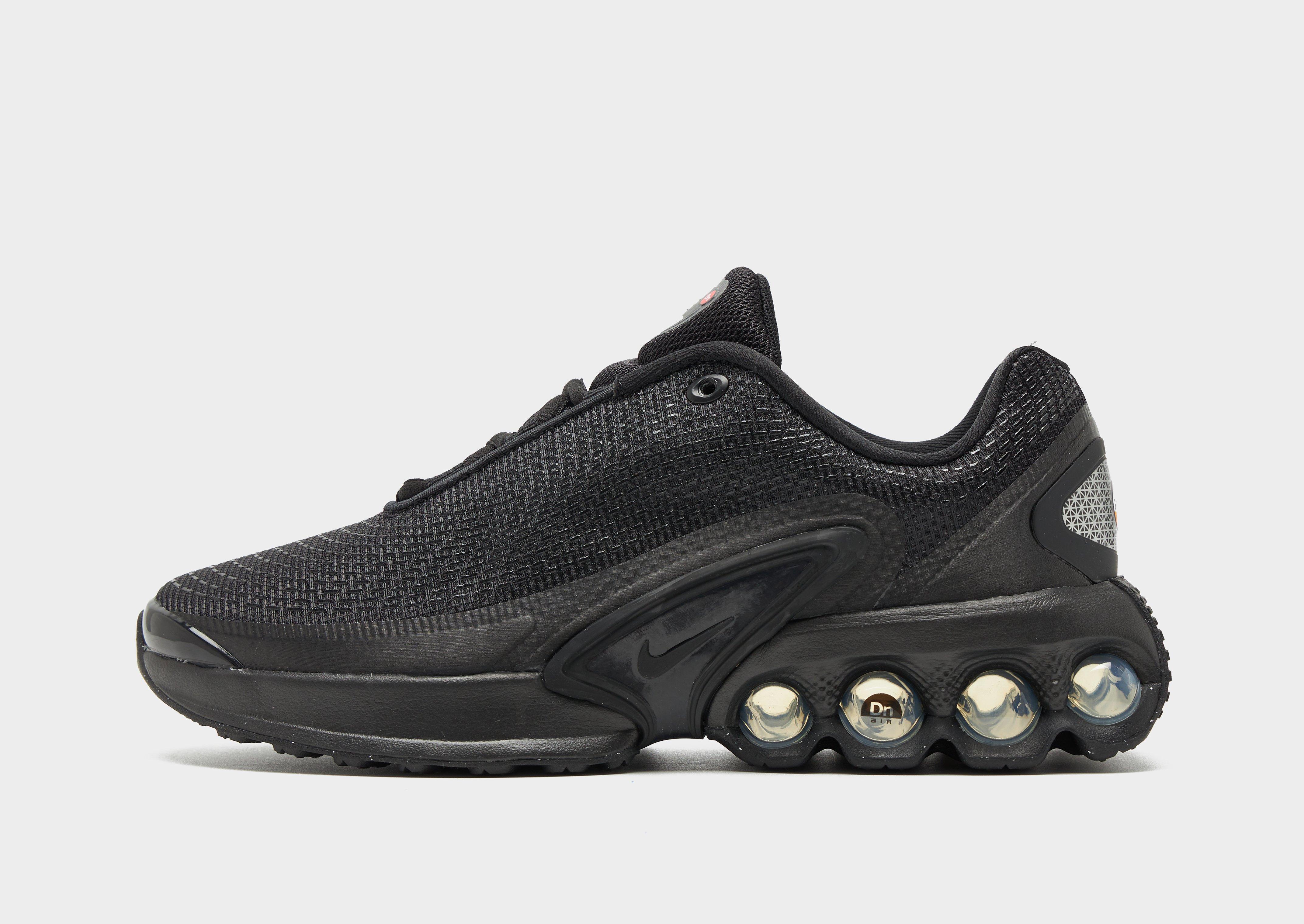Feel the unreal with every step in these junior's Air Max Dn shoes from Nike. In a Black colourway with Grey details, these revolutionary sneakers have a multilayered mesh upper with a haptic print. They feature matte synthetic accents for support, while the plush foam midsole surrounds the cushioning system for added comfort. Stealing the show, the Dynamic Air unit system features two sets of dual-pressure tubes that shift air levels from the firmer heel to the softer tubes towards the forefoot. With a solid rubber outsole to contain that extra energy, these shoes are finished off with signature Swoosh and Air Max logos. Style Code: IH7672-002