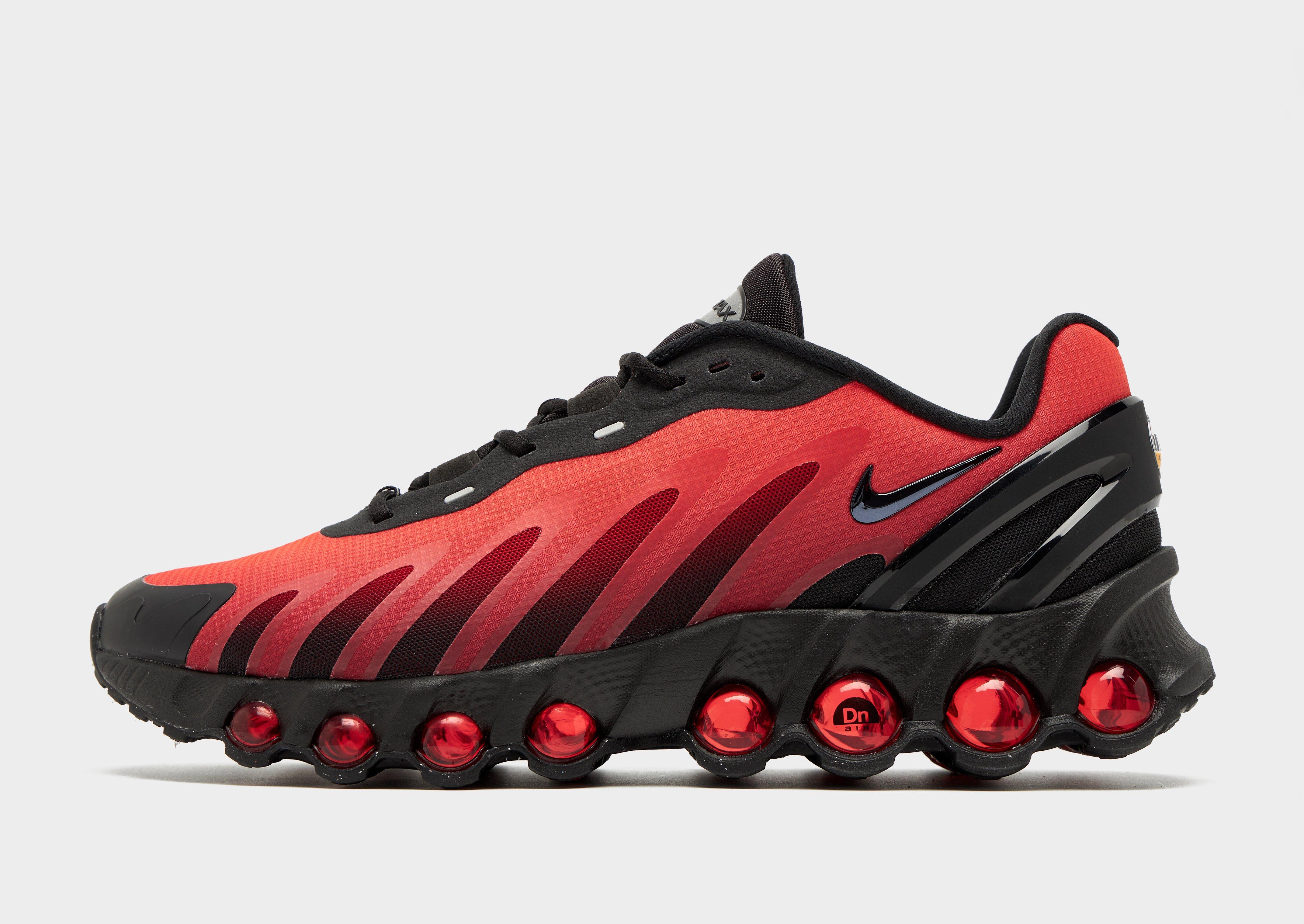 Feel the unreal with every step in these men's Air Max Dn8 shoes from Nike. In a Black colourway with Red details, these revolutionary sneakers have a lightweight, mesh upper with synthetic accents for support, while the plush foam midsole surrounds the cushioning system for added comfort. Stealing the show, the Dynamic Air unit system features eight sets of dual-pressure tubes that shift air levels from the firmer heel to the softer tubes towards the forefoot. With a solid rubber outsole to contain that extra energy, these shoes are finished off with signature Swoosh and Air Max logos. Style Code: FQ7860-008
