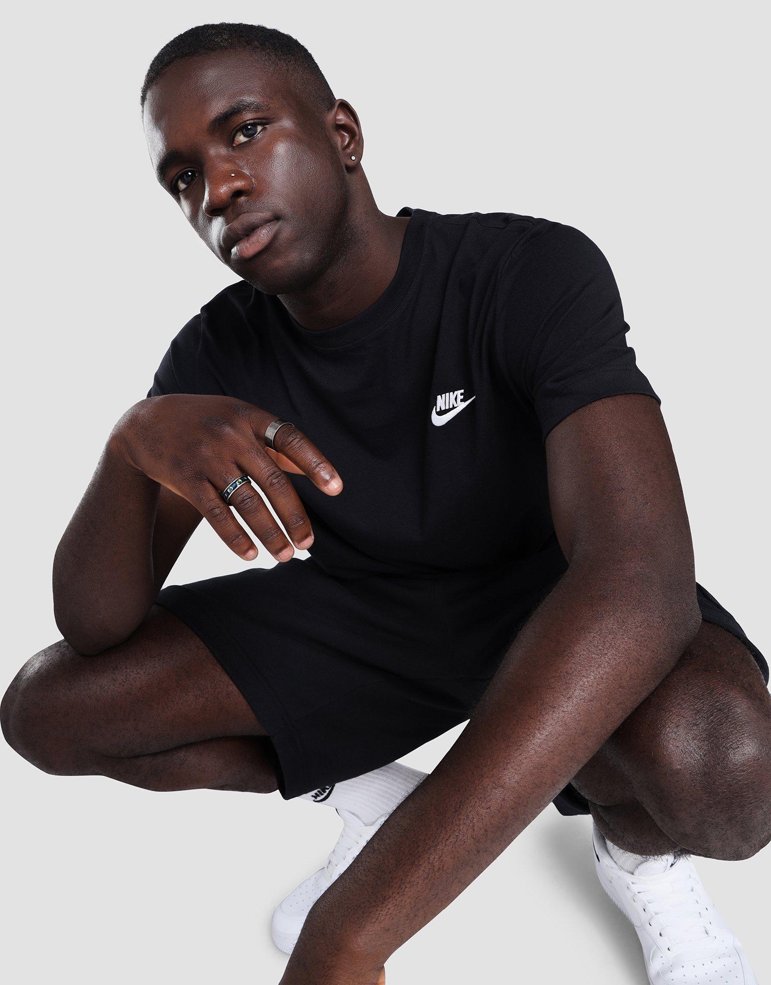 Freshen up your off-duty look with a Swoosh essential in this men's Club T-Shirt from Nike. In a black colourway, this tee is made from soft cotton for an ultra-comfy and relaxed wear. Coming in a regular fit, this tee has a crew neckline and short sleeves for a classic cut. Perfect for reppin' with joggers, this tee is finished with contrasting white Nike Swoosh branding to the chest. Machine washable. | Our model is 6'2" with a 40" chest and wears a size medium.