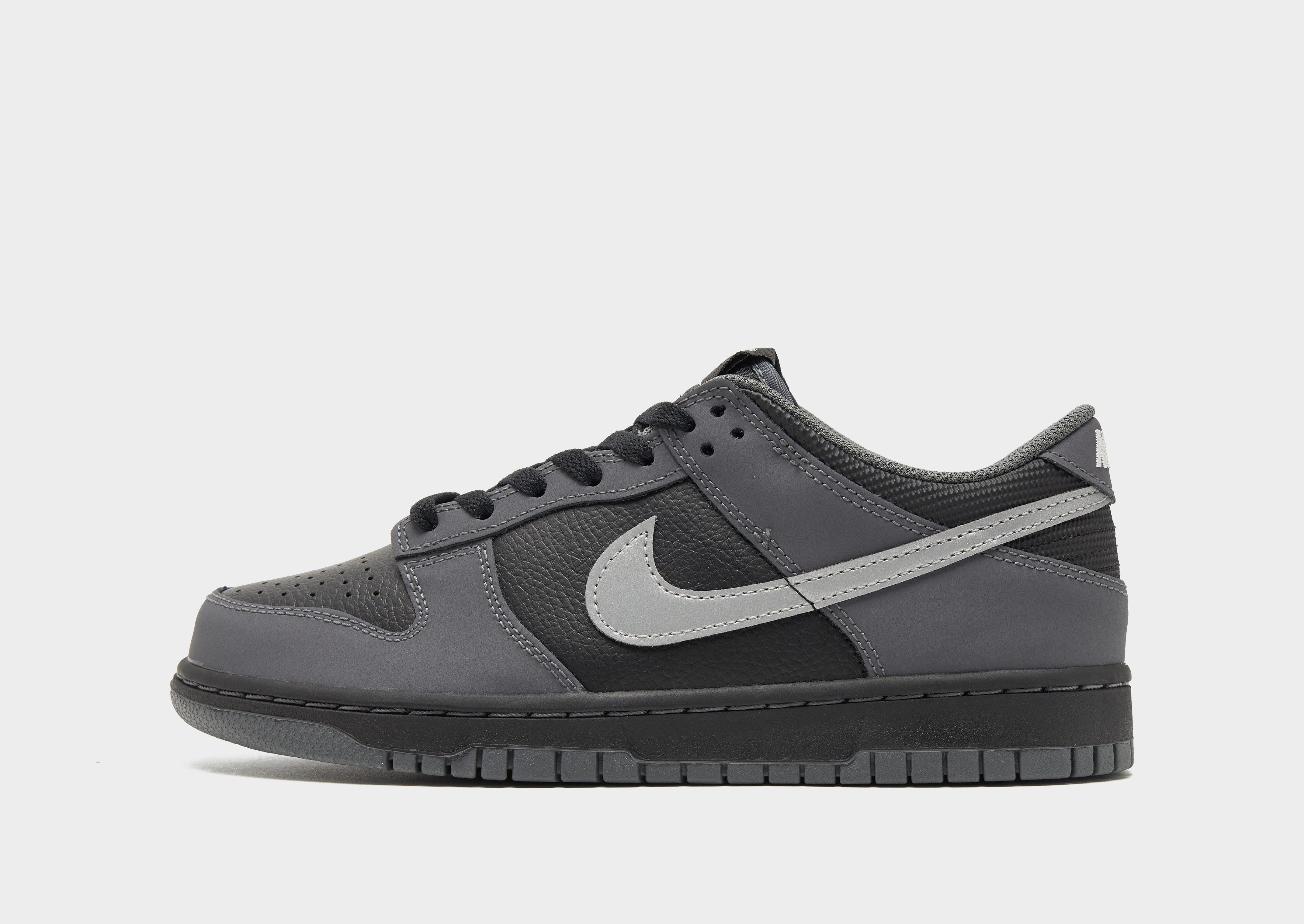 Inspired by b-ball style, these junior's Dunk Low shoes from Nike are back from '85. These low-profile sneakers have a premium leather and synthetic upper keeping the OG design lines. They come in a Black colourway with Silver details, and feature a tonal lace-up fastening for a locked in fit. With breathable perforations to the toe box, these shoes are sat on a soft foam midsole for lightweight cushioning and maximum comfort. Finished with a grippy rubber tread for traction on the courts, signature Nike branding and the iconic Swoosh logo to the sidewalls. Style Code: IM6028-010