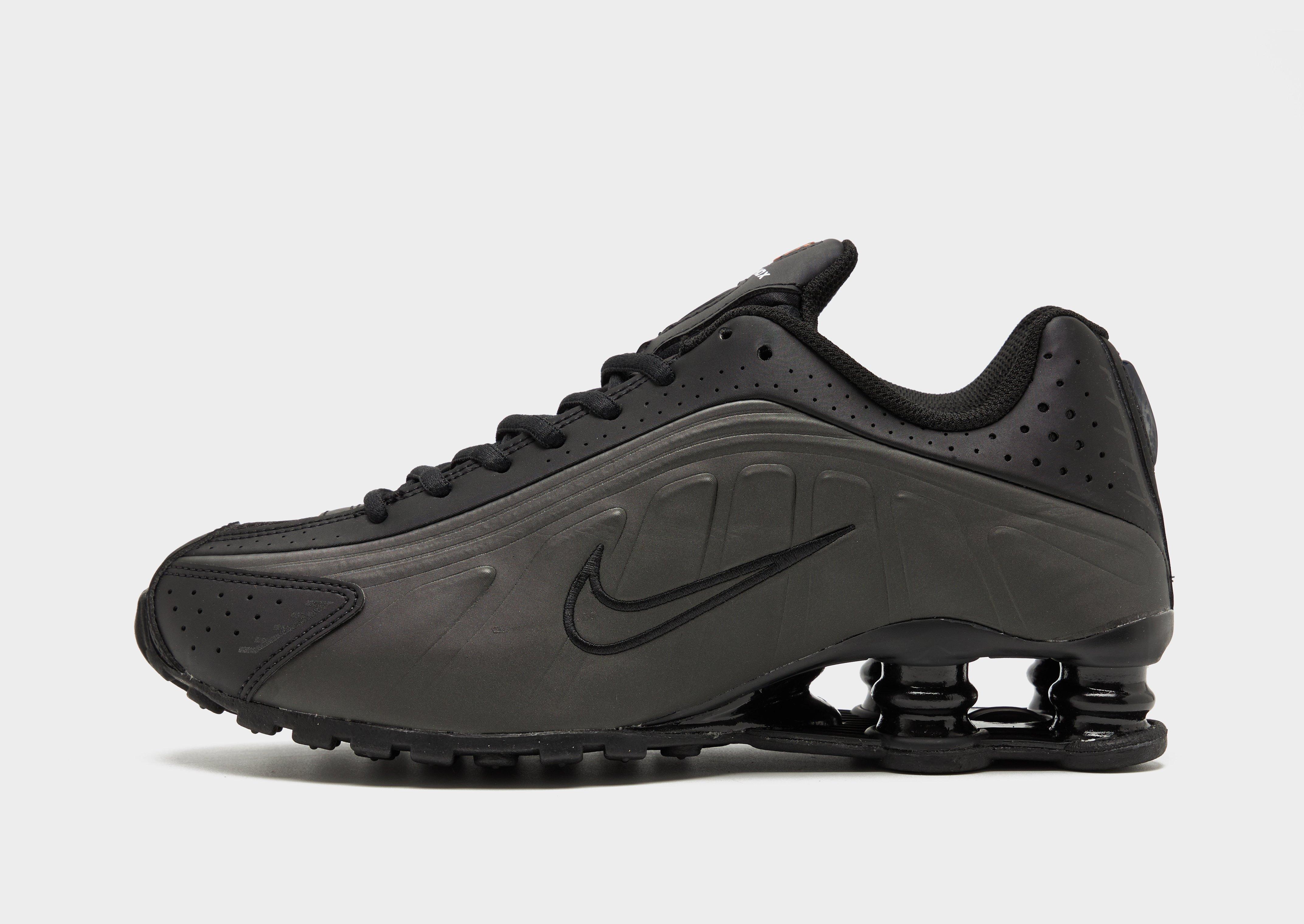 Retro but futuristic, these junior's Shox R4 sneakers from Nike bring back the 2003 icon in its OG form. In a Black colourway with tonal details, these statement shoes are built with a breathable mesh upper that features glossy TPU overlays and a tonal lace up fastening for a locked-in fit. Nike's iconic Shox tech sits underfoot, with a full-length midsole of springy Shox columns for a super comfy feel. With a grippy rubber sole, these trainers are finished with Shox branding to the tongue and the signature Swoosh logo embroidered to the sidewalls. Style Code: CW2626-003