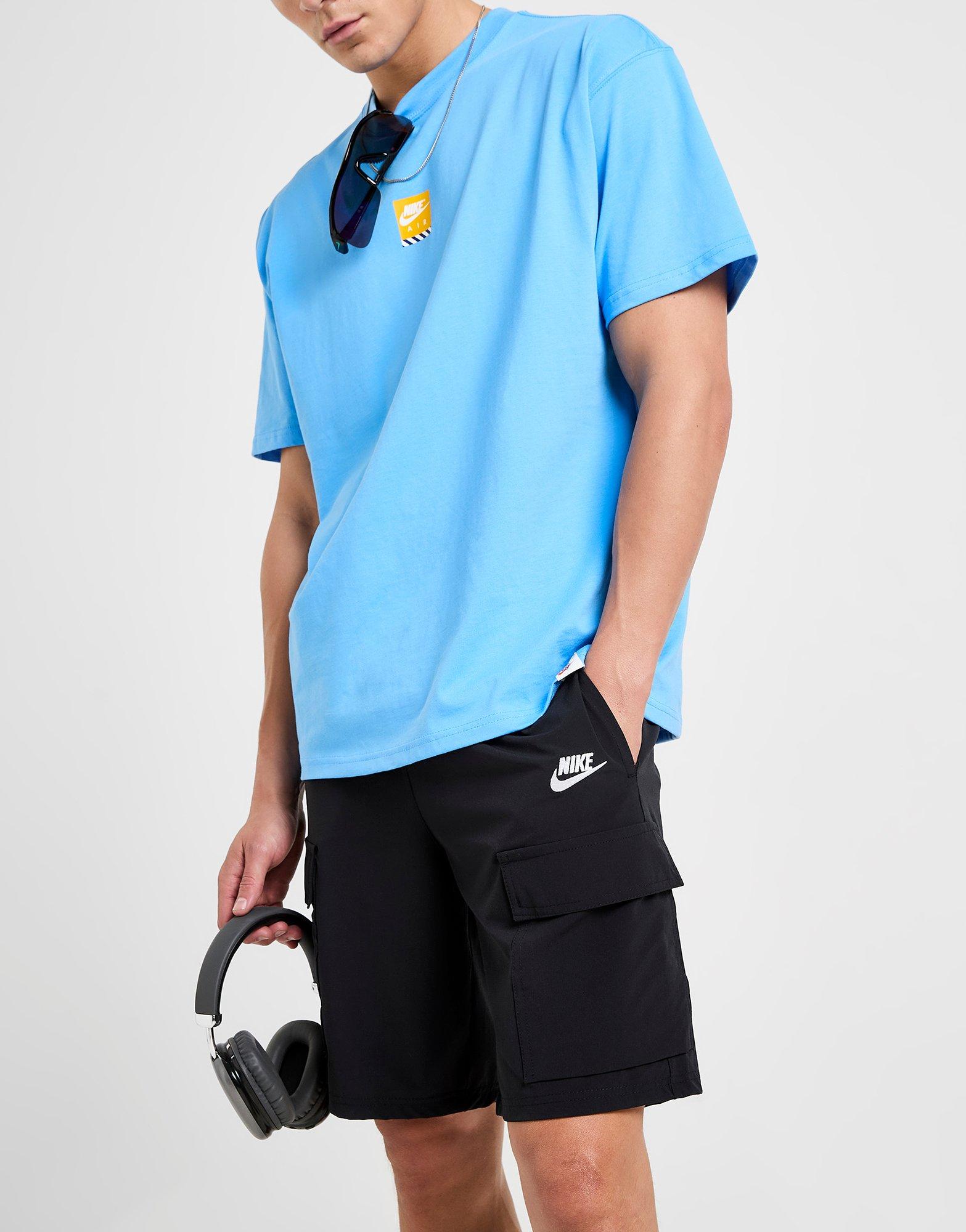 Freshen up your everyday rotation with these men's Woven Cargo Shorts from Nike. In a Black colourway, these shorts are cut from smooth, lightweight polyester fabric for total comfort. They feature an elastic waistband with a drawcord to adjust the fit, with side and cargo pockets to stash away your essentials. Finished up with an embroidered Futura logo on the thigh. Machine washable. | Our model is 6'2" and wears a size M.