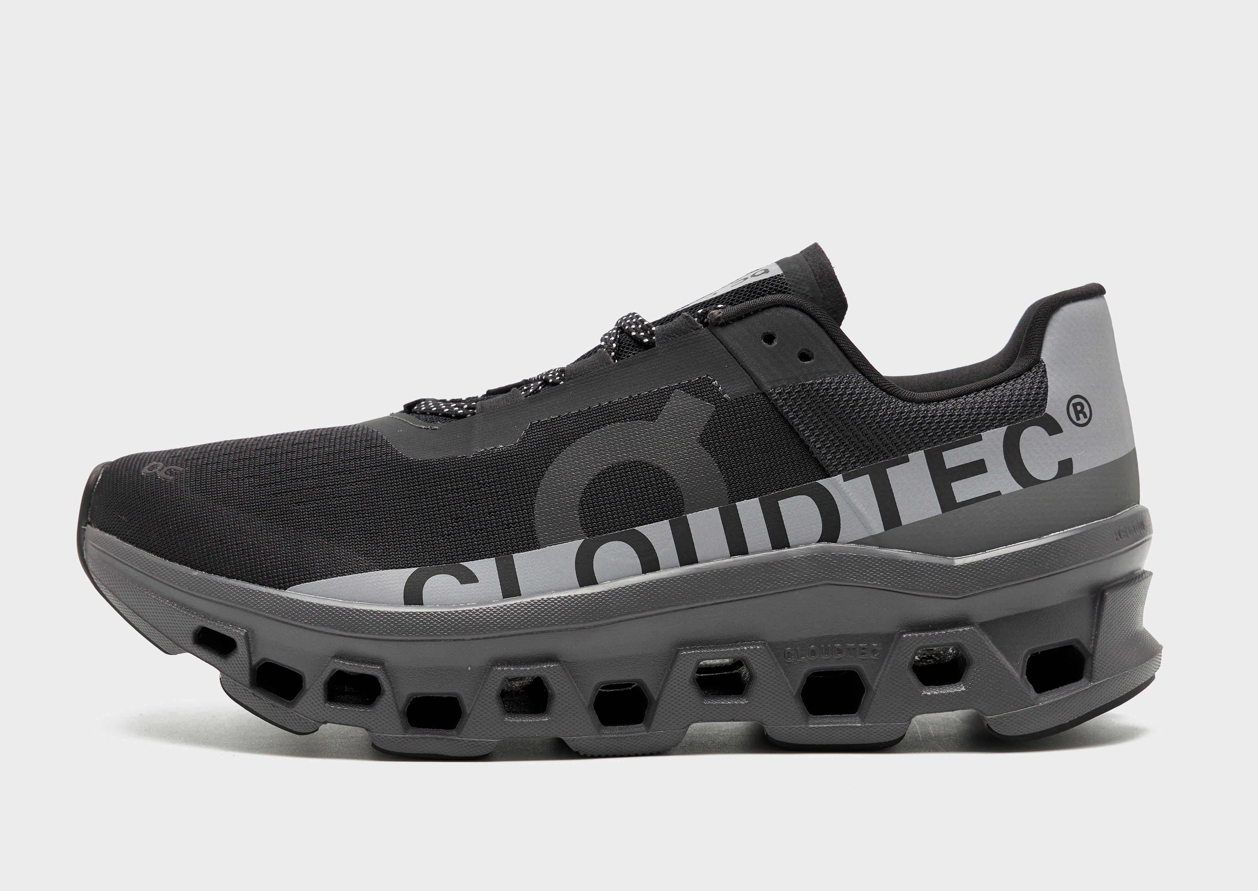From the track to the streets, level up in these men's Cloudmonster Lumos trainers from On Running. In a Black colourway, these runners have a breathable mesh upper with streamlined synthetics for added support. They feature a tonal lace fastening with padding around the low-cut collar for a secure fit, and sit atop a chunky Cloud midsole with ultra-lightweight cushioning for a smooth, responsive ride. With a tough rubber outsole for grippy traction, they're finished up with a reflective side panel with a 'CLOUDTEC' wordmark and signature On branding.
