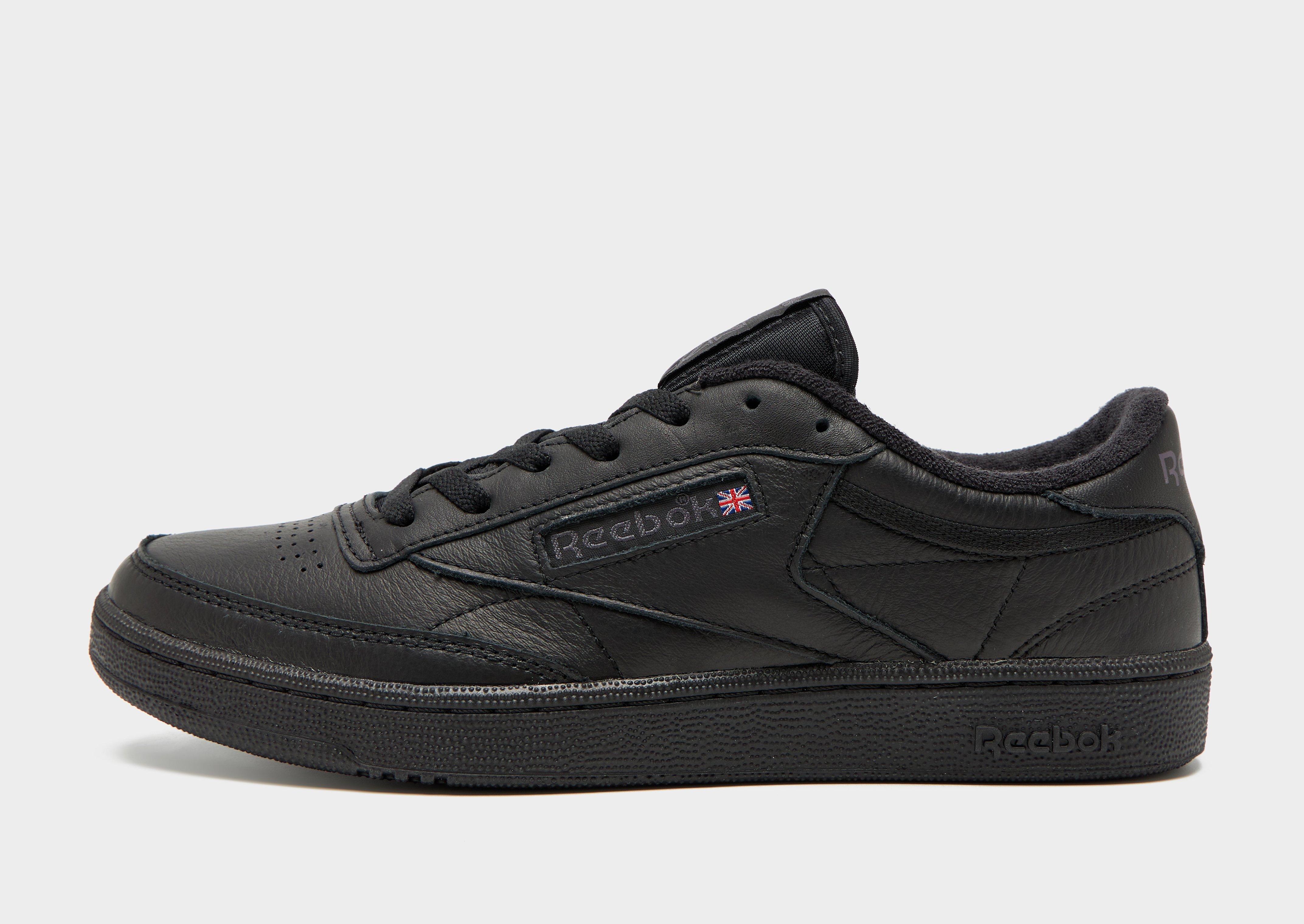 Throwback to a pair of 80s classics with these men's Club C 85 trainers from Reebok. Coming in a black colourway, they feature a leather upper for a classic premium style. The padded foam sockliner adds additional comfort and support. Sat upon a supportive midsole with a high abrasion outsole for time tested durability. With the tonal laces, the classic silhouette is finished with Reebok branding to the side, heel and tongue.