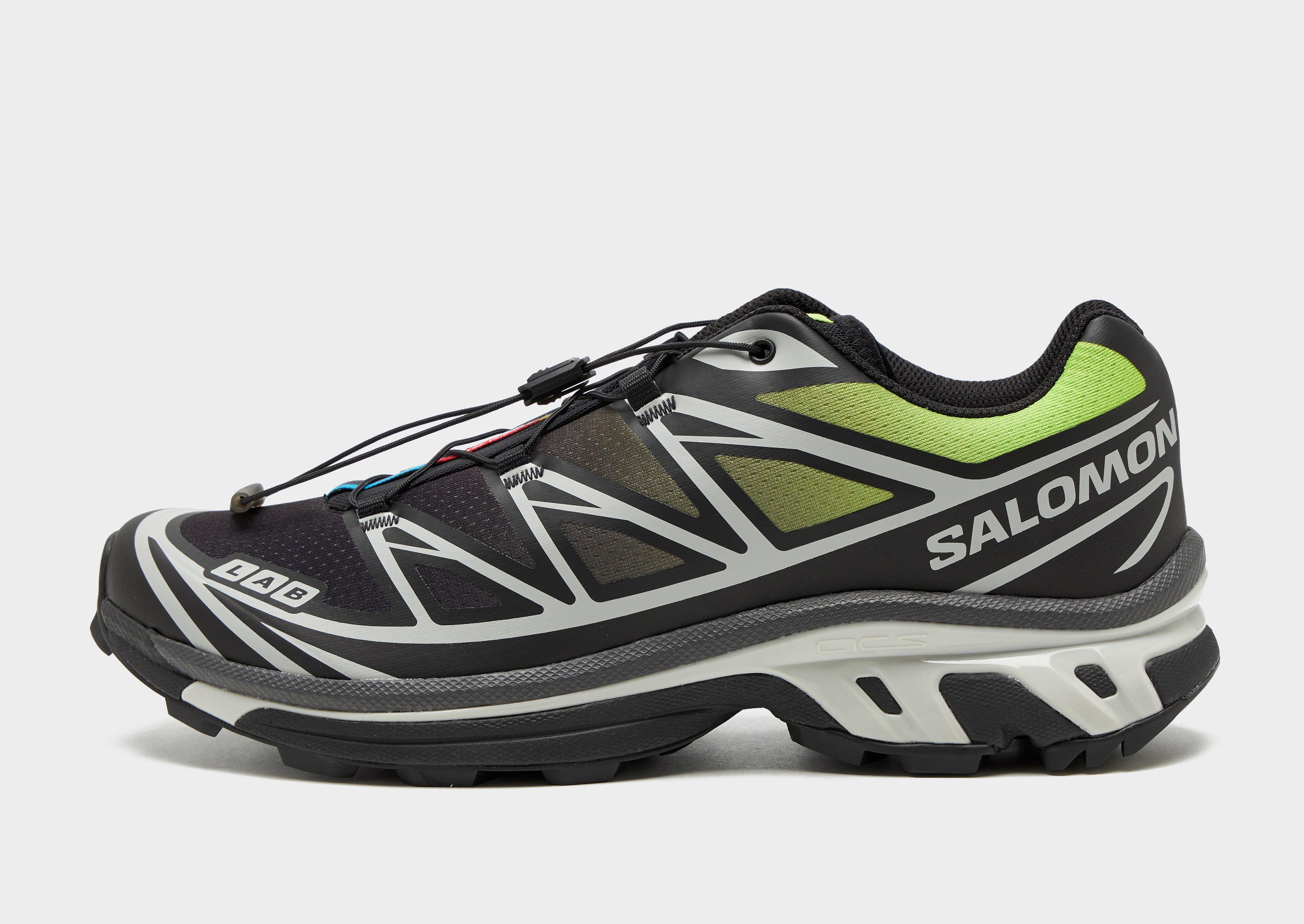 Take on any terrain with these men's Salomon XT-6 trainers, designed for high-performance trail running and outdoor exploration. Built for durability and stability, they deliver confidence on both urban streets and rugged paths. The lightweight upper supports breathability, while the aggressive outsole grips varied surfaces. Finished in a black and faded green colourway, they combine technical performance with standout outdoor style.