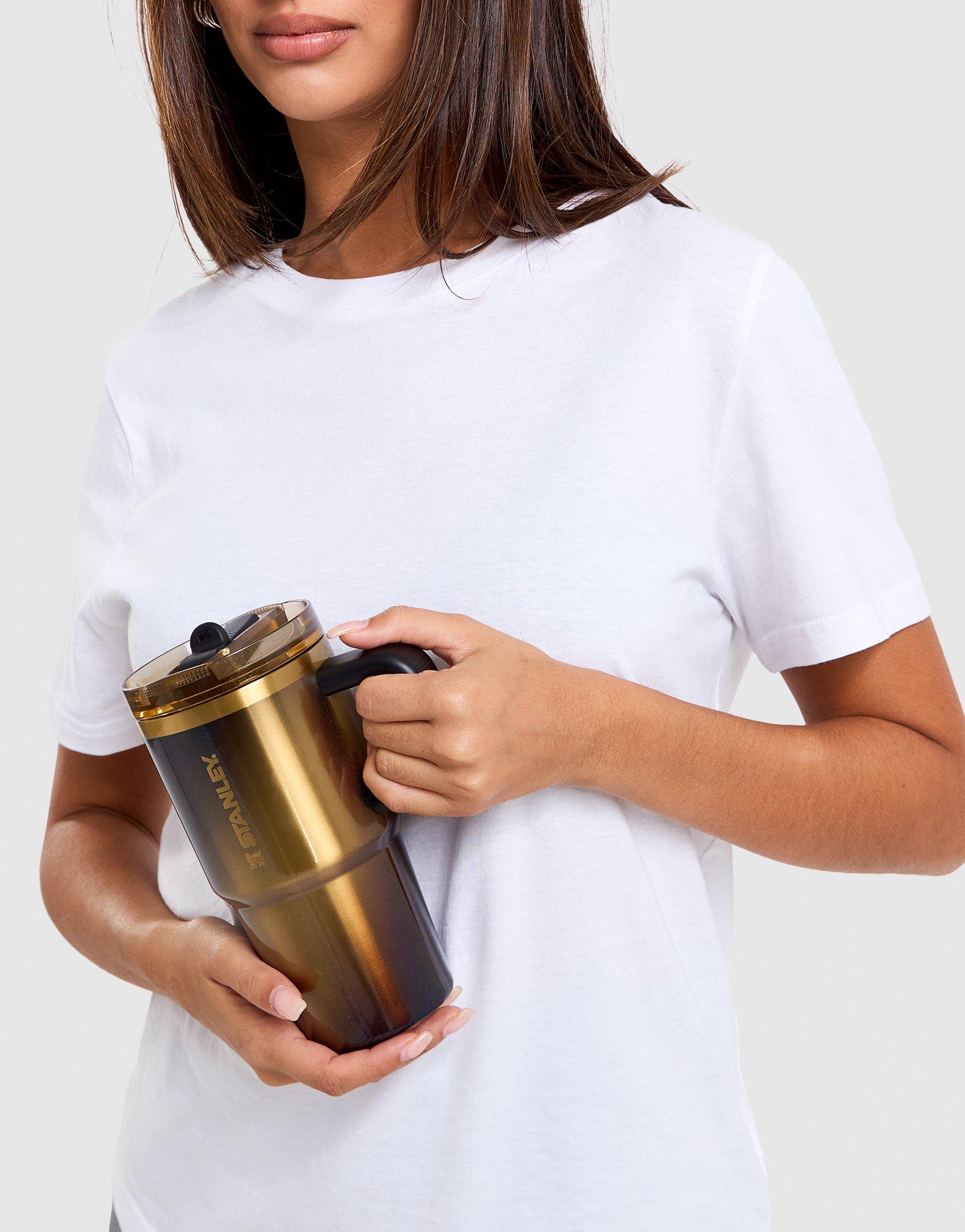 The iconic Quencher Tumbler water bottle returns, now with the leakproof ProTour Flip Straw lid. In a metallic Gold and Black colourway, this durable, stainless steel bottle keeps your drinks cold for up to 11 hours, your hot drinks hot for 7, and icy drinks for up to 2 days, with its double-wall vacuum insulation. The lid features a leakproof flip straw, so you don’t have to worry about any spillage. The handle allows for easy carrying on-the-go, and the base fits into most car cup holders. Capacity: 590mL / 20oz Style Code: 10-12484-0657
