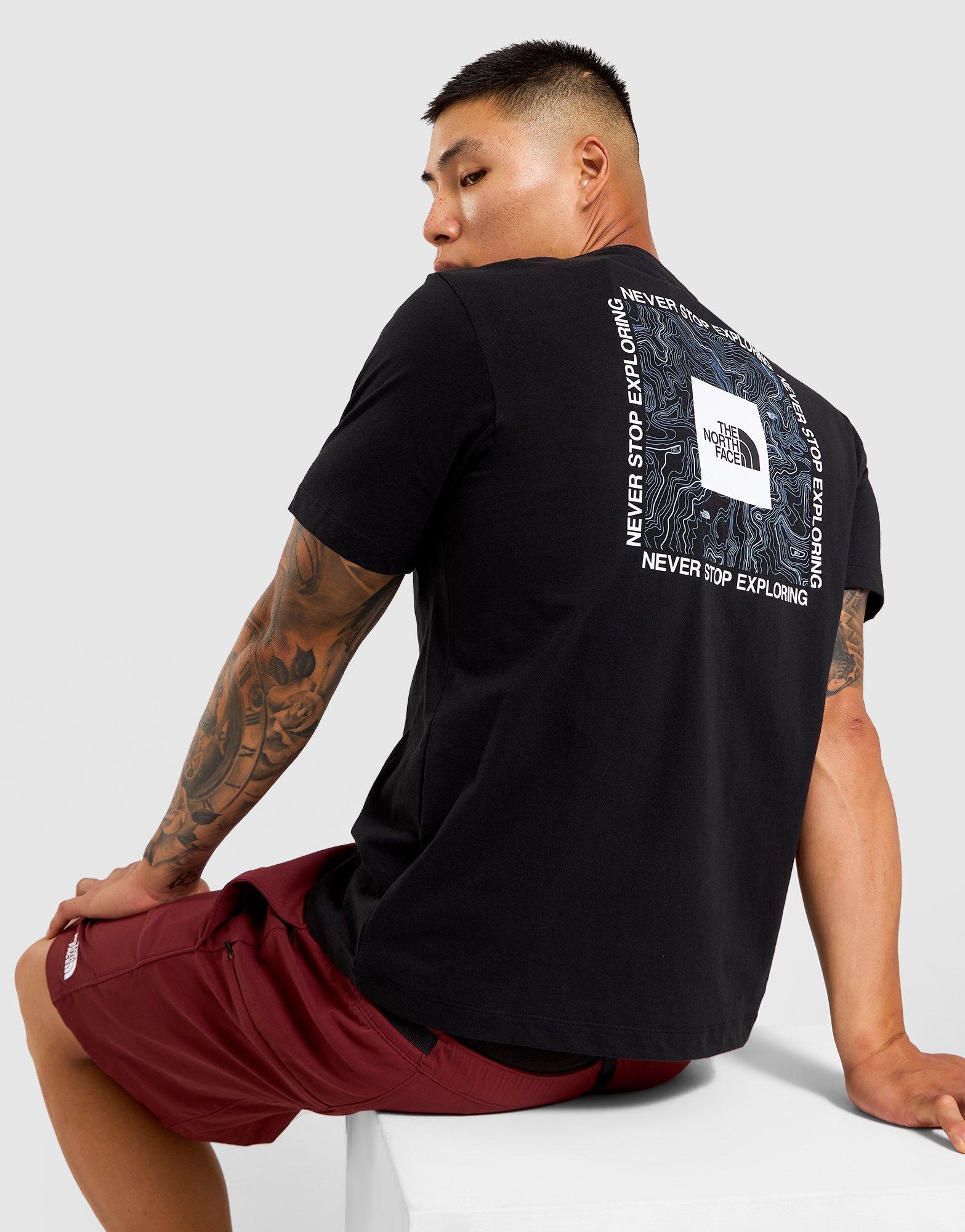 This The North Face men's t-shirt in black features cotton-blend material with short sleeves. The standard fit ensures comfortable wear during any activity. Classic black styling provides timeless versatility. Durable construction makes this an essential piece for active lifestyles.