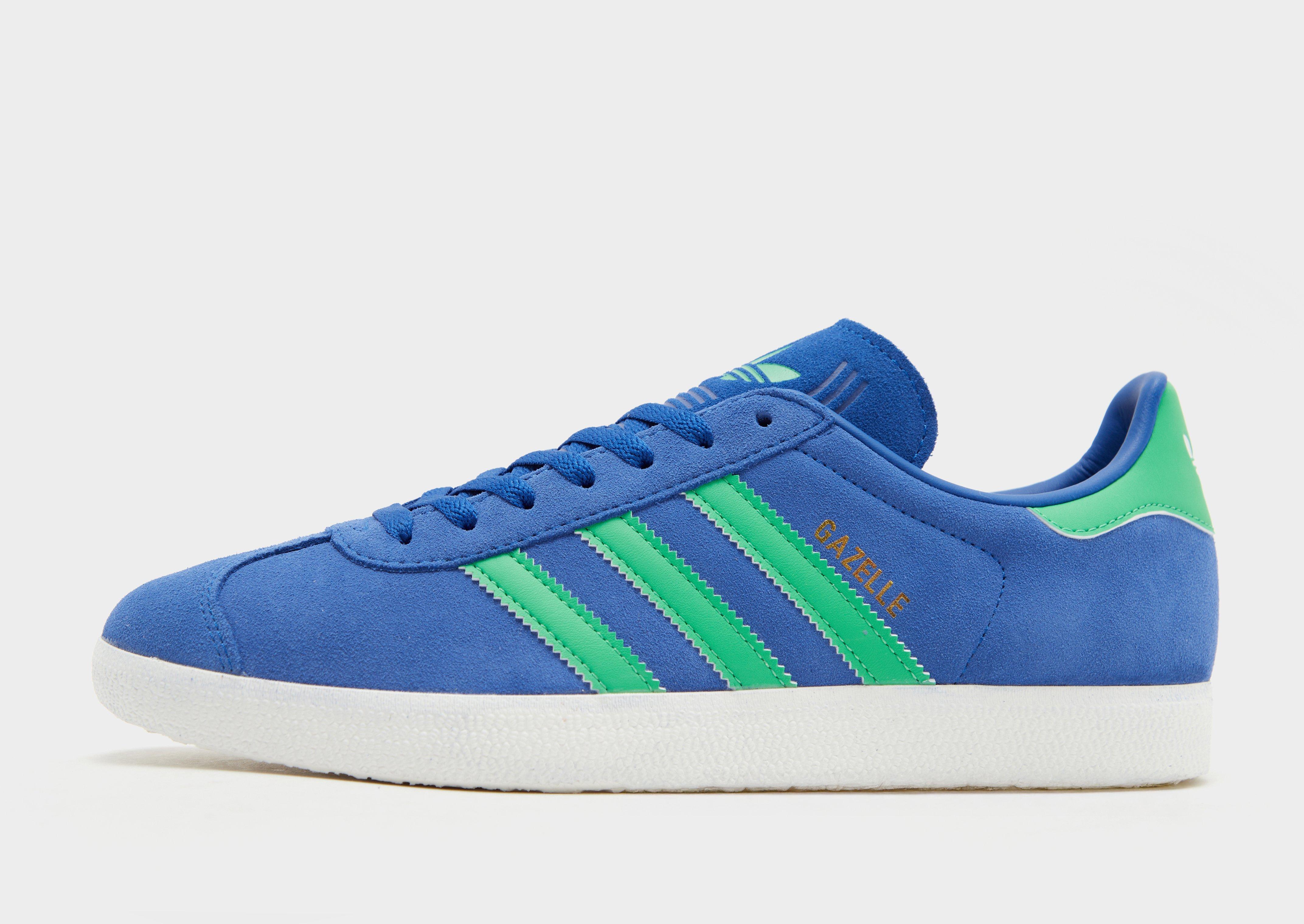 Bag some classic terrace style with these men's Gazelle Indoor sneakers from adidas Originals. In a Team Royal Blue and Energy Green, these sneaks are cut from smooth and durable leather for lasting wear. They feature a lace fastening to lock you in, with a padded collar for support and a synthetic lining for a snug fit. Underfoot, they sit on a grippy rubber outsole for firm traction and are signed off with classic 3-Stripes and Trefoil branding. | JH5389