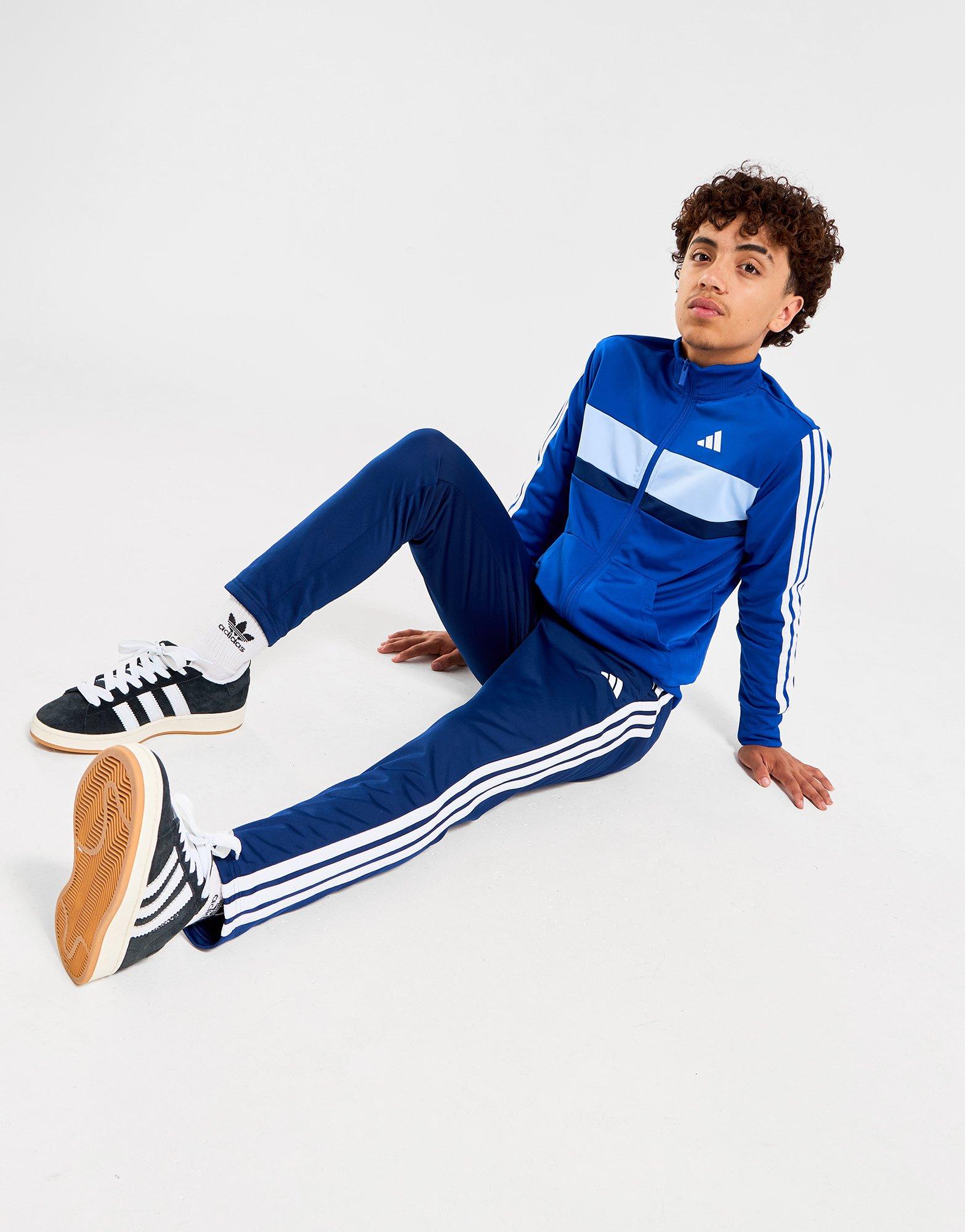 Wherever the kickabout, stay covered in the 3-Stripes with this juniors' Tiberio Tracksuit from adidas. Featuring a full zip track top and streamlined track pants, this recycled knit set is packed with CLIMACOOL tech to remove sweat and keep you dry and fresh. Finished off with colour block panels and signature Performance logos. Machine washable.