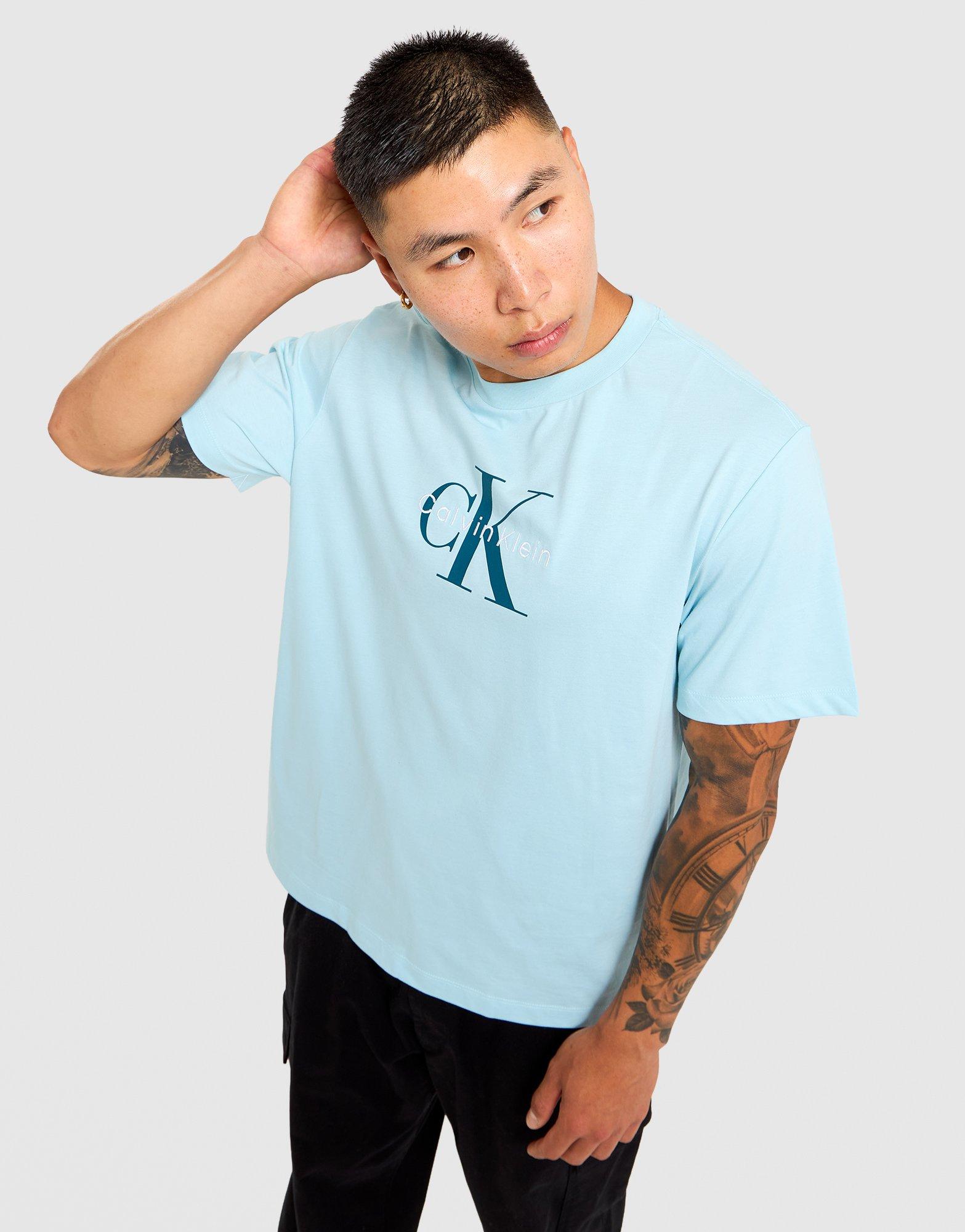 This Calvin Klein crew neck tee features embroidered detailing on soft cotton-blend material. Built in a standard fit with short sleeves and a ribbed crewneck, it delivers comfort without sacrificing structure. The light blue colorway brings a fresh vibe to your wardrobe, while the quality embroidery adds a premium touch. Perfect for guys who want basics that feel a step above the ordinary. Style Code: 4RB862GCJ9