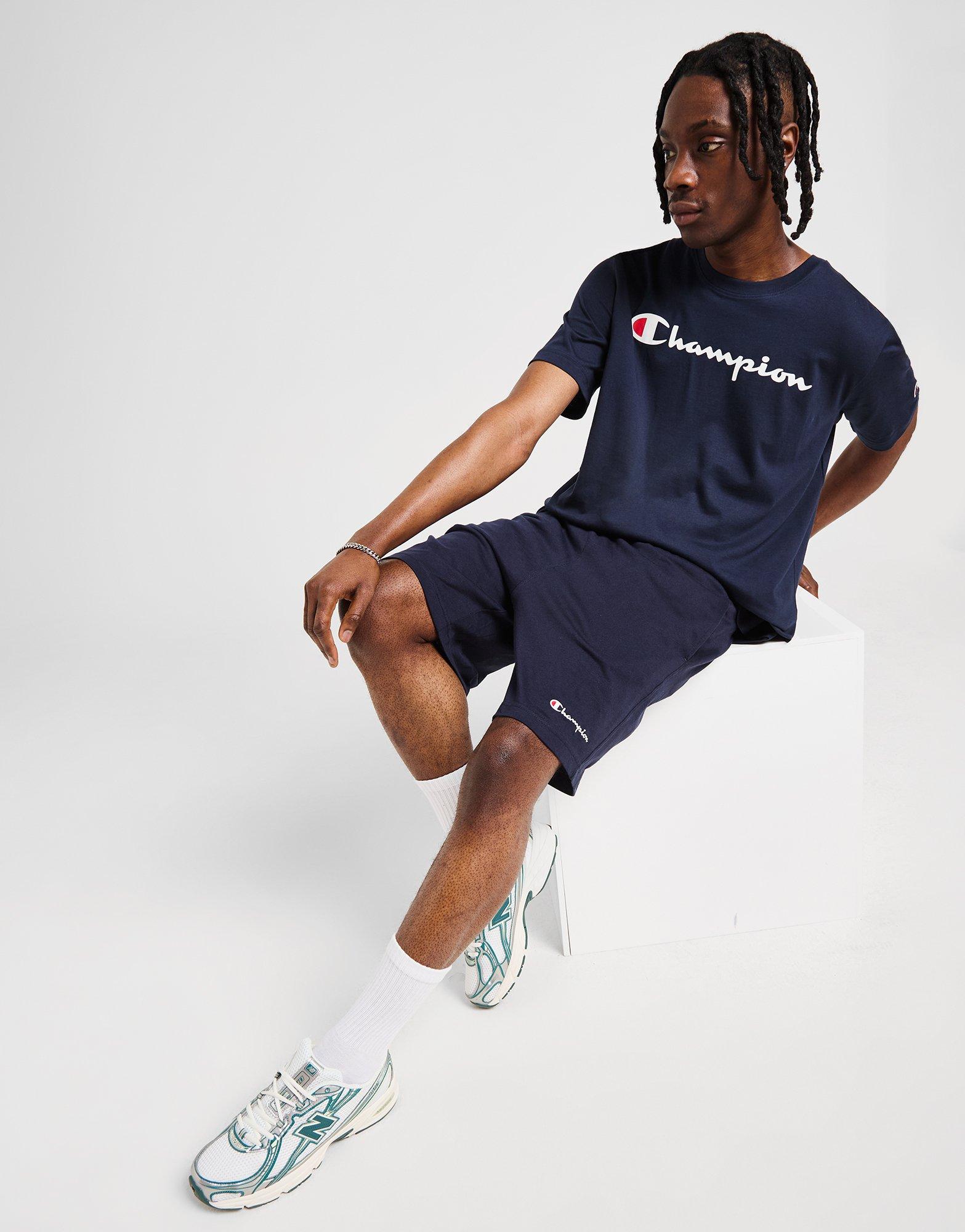 Embrace the warmer temps with these men's Small Logo Core Shorts from Champion. In a Navy colourway, these standard-fit shorts are cut from soft cotton fabric for everyday comfort. They feature an elasticated, drawcord waistband for an adjustable fit, with side pockets for stashing your essentials. Finished up with classic Champion branding to the leg. Machine washable | Our model is 6'0" and wears a size M.