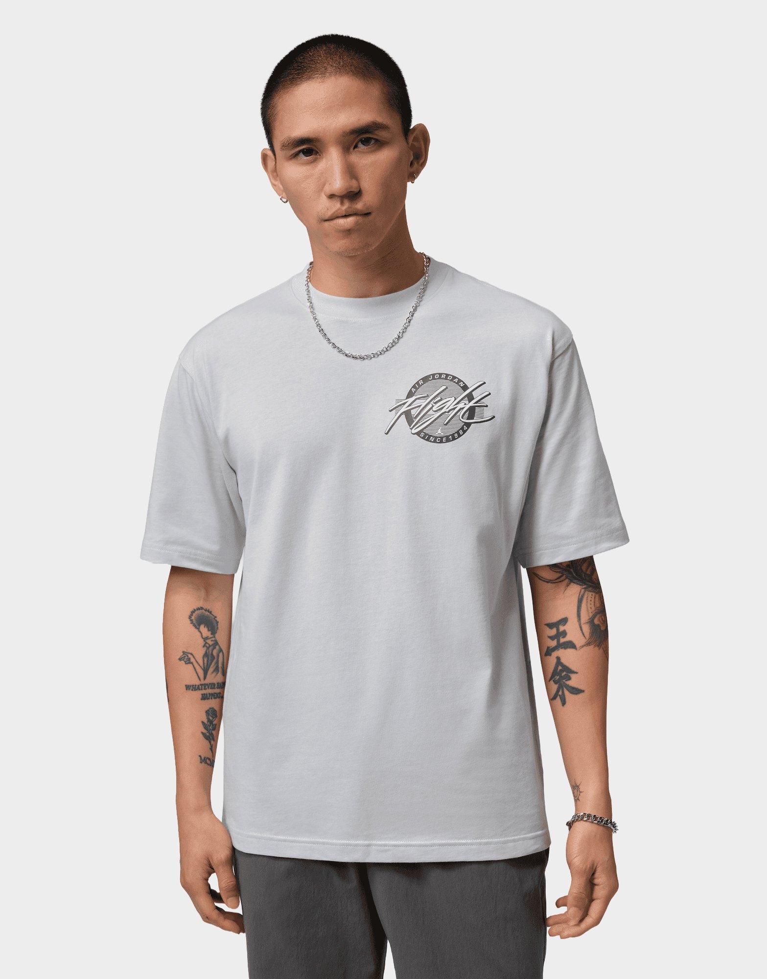 Elevate your game-day wardrobe with this men's Jordan Flight T-Shirt, built for fans who rep the brand head-to-toe. The standard fit ensures classic comfort, while the front and back Jordan logo placements deliver premium sport-heritage appeal. Finished in a fresh light blue colourway with black contrast, this short-sleeve tee pairs effortlessly with joggers or jeans. It's a versatile essential for any Jordan enthusiast. Style Code: IF3067-472