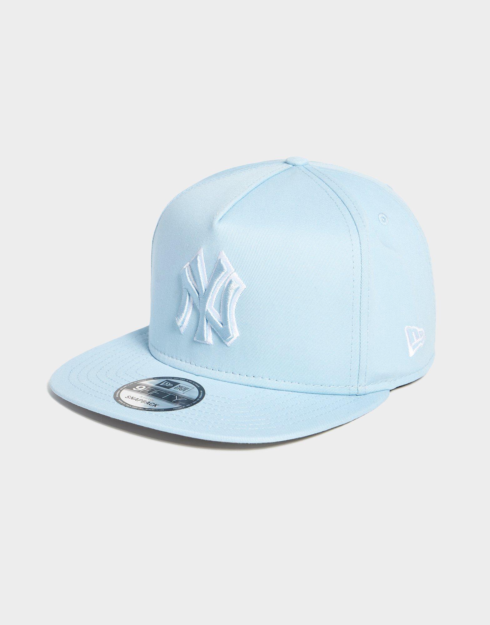 Upgrade your 'fits with this MLB New York Yankees 9FIFTY Cap from New Era. In a Light Blue colourway, this cap is made with soft but durable woven cotton for lasting wear. With a stitched panel construction, it has breathable eyelets through the crown and a pre-curved visor for a classic look. It has an adjustable back strap for a custom fit, and is finished with a White Yankees logo at the front. Signed off with New Era branding. Style Code: 60834140
