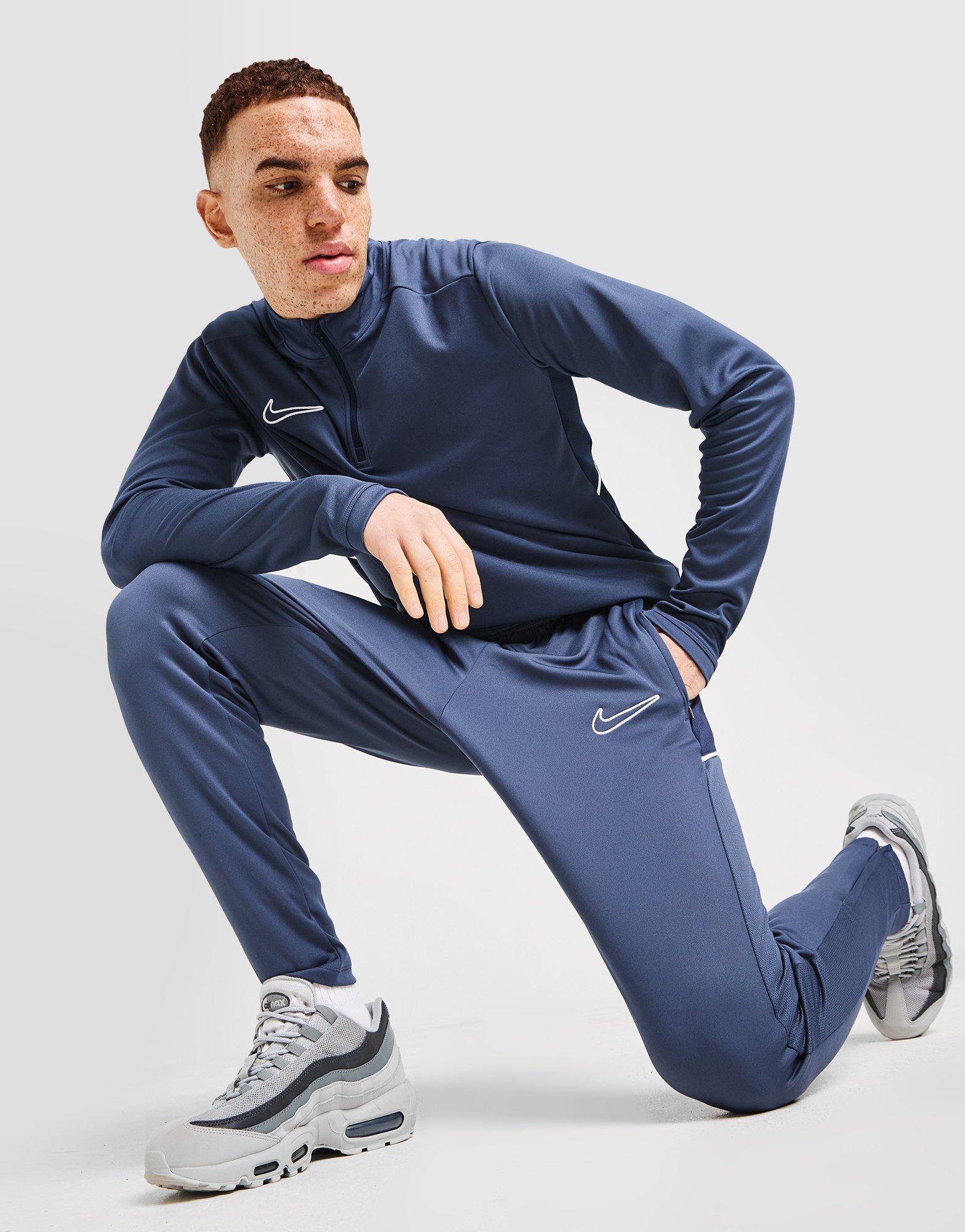 Exclusive to JD. Push your pace in training sessions with these men's Academy Track Pants from Nike. In a Thunder Blue, Obsidian and White colourway, these slim-fit pants are cut from a smooth knit fabric for lasting comfort. They feature an elasticated waistband with a drawcord and zippered cuffs so you can adjust the fit, while mesh panels keep things cool as you put in the work. With zippered pockets for storage, they're signed off with the signature Swoosh logo to the thigh. Machine washable. | Our model is 6'0" and wears a size M.