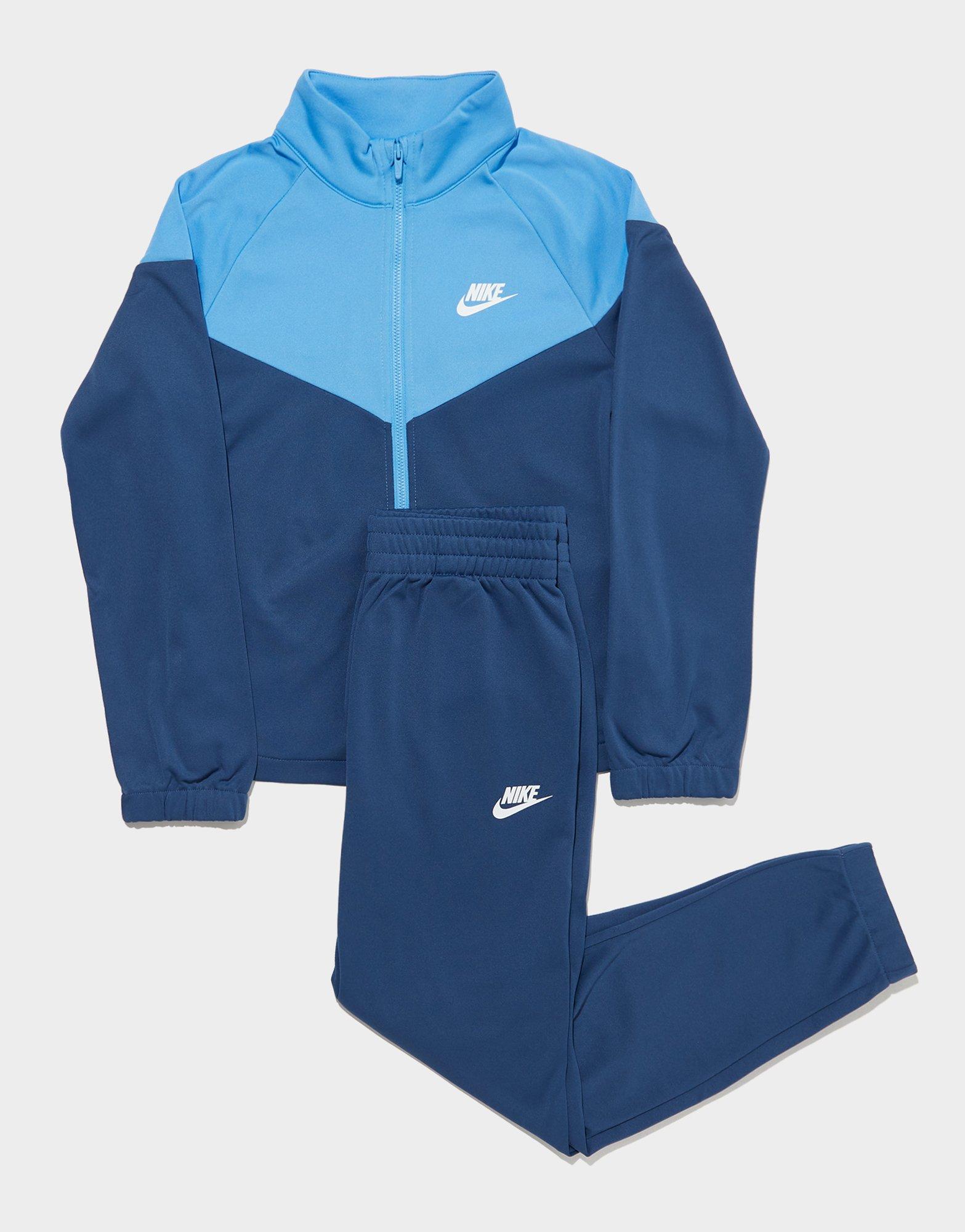 Get him ready for action with this junior's Nike Dri-FIT Tracksuit Set. Featuring a standard fit with Dri-FIT moisture-wicking technology, it showcases midnight navy with university blue accents for bold athletic style. The matching set keeps him dry and comfortable during play or practice. Built with Nike quality and performance fabric, this tracksuit delivers function with standout colour. Style Code: HQ9315-461
