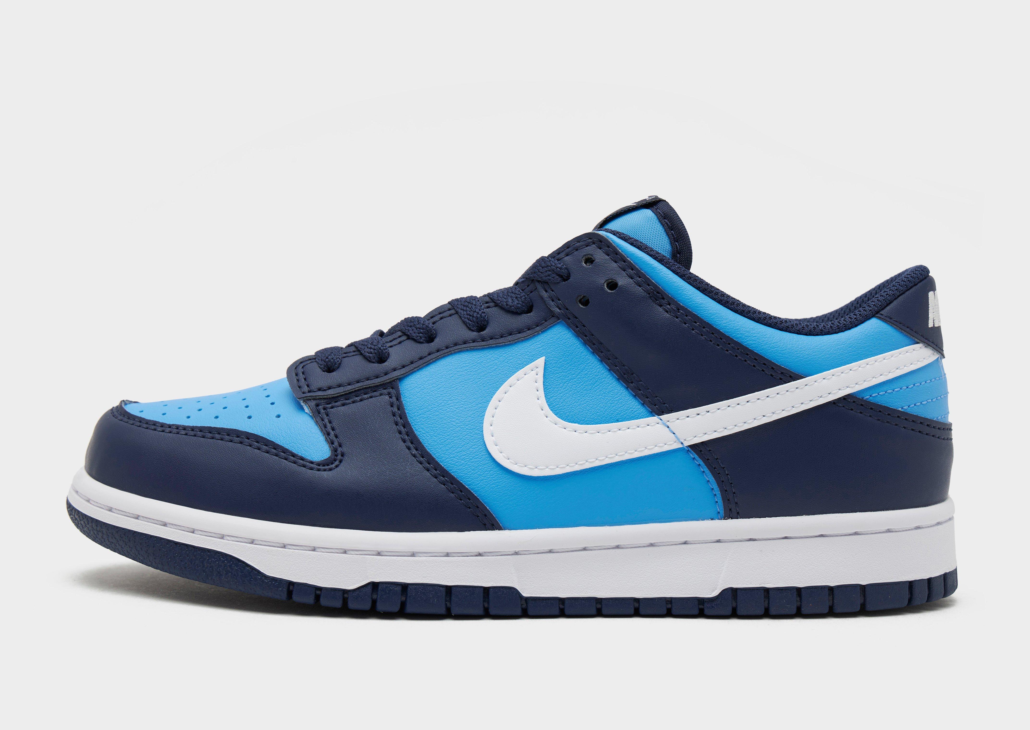 Inspired by b-ball style, these junior's Dunk Low trainers from Nike are back from '85. These low-profile kicks have a premium leather and synthetic upper keeping the OG design lines. They come in a Blue colourway, and feature a tonal lace-up fastening for a locked in fit. With breathable perforations to the toe box, these sneakers are sat on a soft foam midsole for lightweight cushioning and maximum comfort. Finished with a grippy rubber tread for traction on the courts, signature Nike branding and the iconic Swoosh logo to the sidewalls.