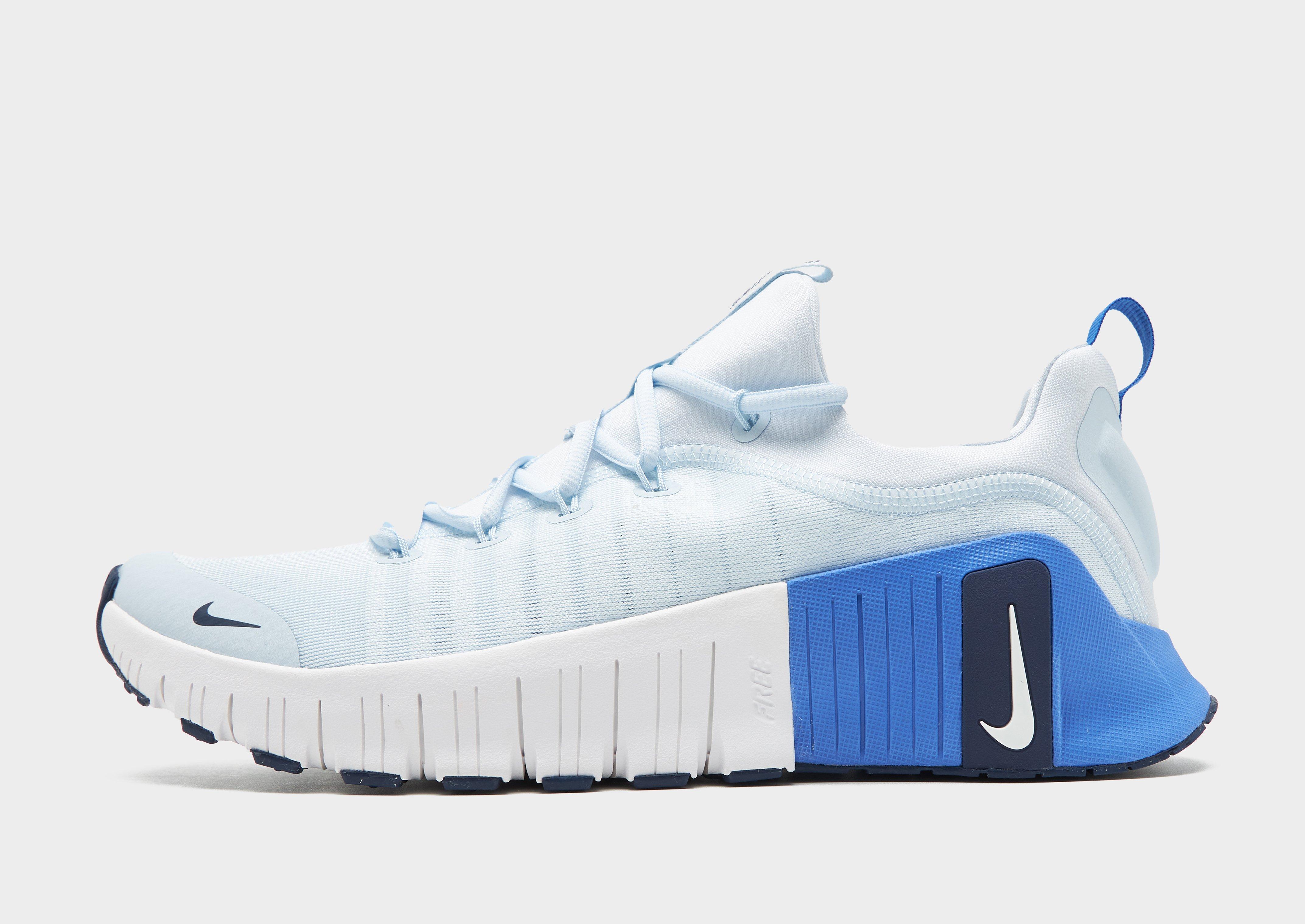 Amp up your training with these men's Free Metcon 6 shoes from Nike. In a Blue colourway with tonal details, these sneakers have a breathable textile upper with an inner sleeve for a sock-like fit. They feature a lace fastening to lock you in, a low-cut padded ankle collar for a plush feel and a moulded heel clip for added support. The low, flat sole provides greater stability and minimises injury when you're lifting or doing CrossFit. Underfoot is a soft foam midsole for cushioned comfort with every step whilst Nike Free tech in the forefoot gives you greater flexibility. With a rubber outsole for total grip, they're signed off with the Swoosh to the sidewalls. Style Code: FJ7127-403