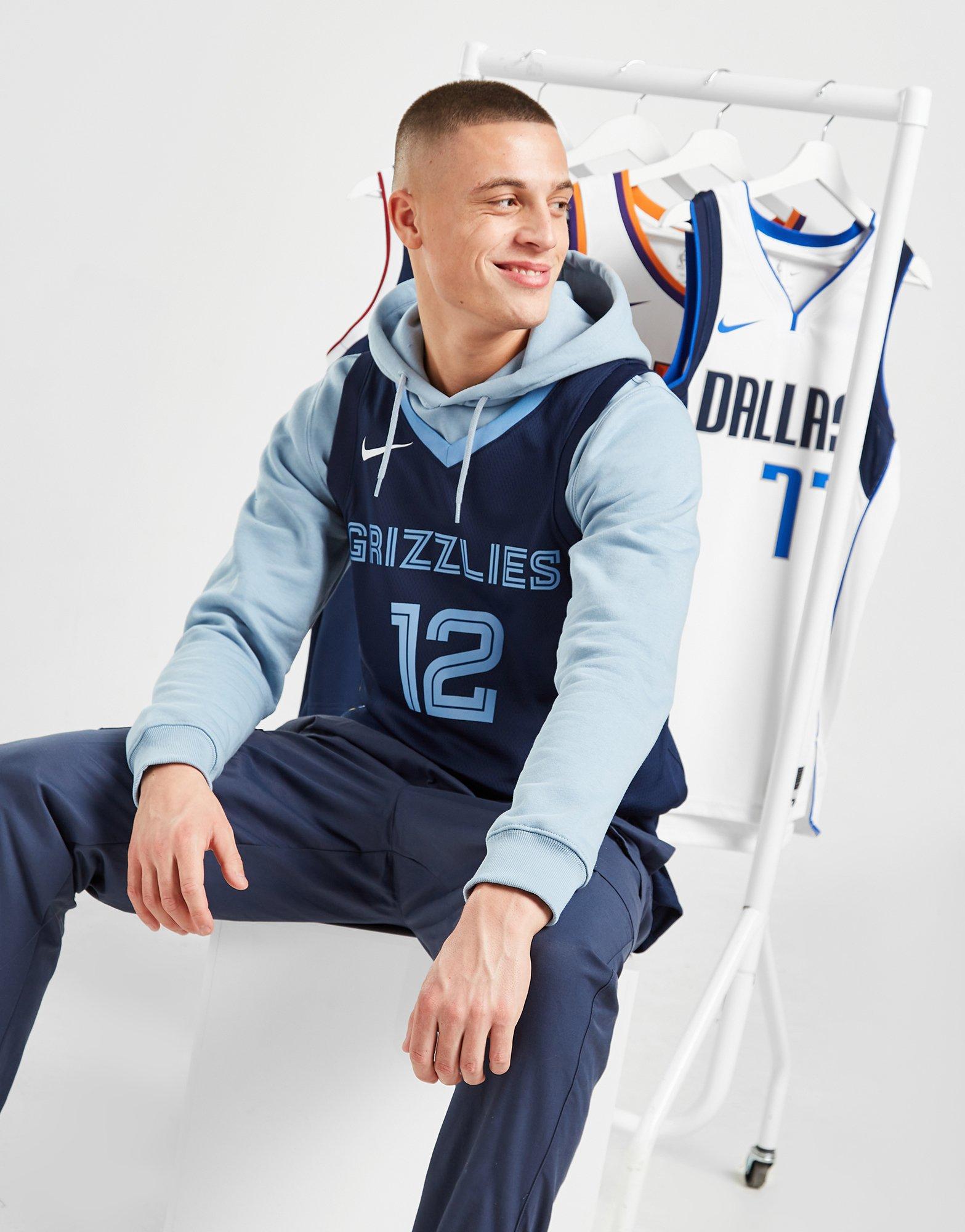 Amp up your support with this men's NBA Memphis Grizzlies Morant #12 Swingman Jersey from Nike. In a College Navy colourway, this jersey is made from a mesh poly fabric that's ultra-smooth and breathable for lasting comfort. It features Dri-FIT tech to keep you cool and a V-neckline with a sleeveless design for a classic cut. With Morant #12 printed to the back, it's signed off with a Grizzlies wordmark and Swoosh to the front. Machine washable. | Our model is 6'1" with a 37.5" chest and wears a size medium.