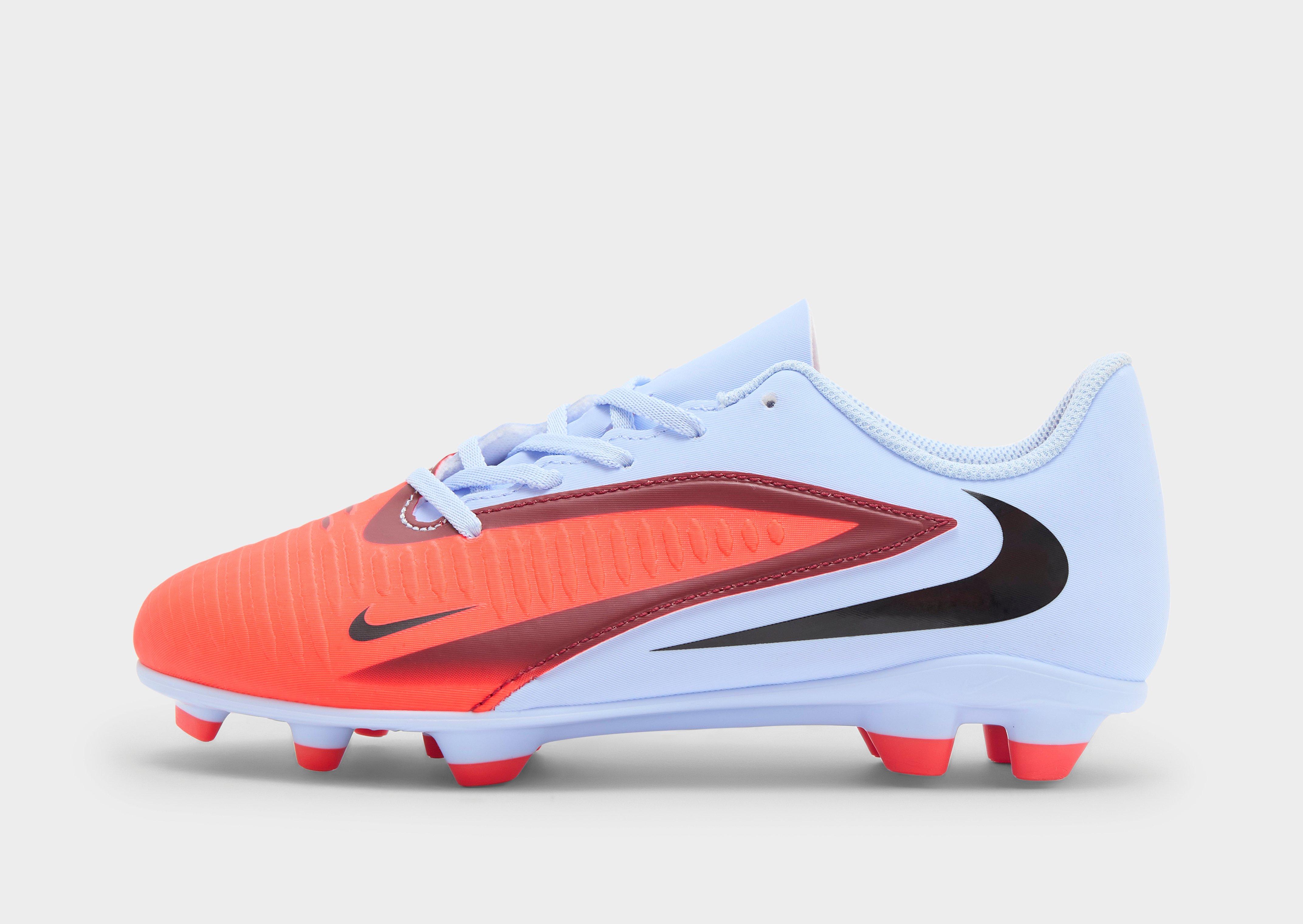 Bring big energy to the pitch in these juniors' Phantom 6 Low Club FG football boots from Nike. In a two-tone Royal Tint and Bright Crimson colour, these boots have a light, durable synthetic upper that moulds to your foot. The low-profile collar feels streamlined, with laces to lock you in. With a grippy traction pattern underfoot, they're finished with signature Nike branding throughout.